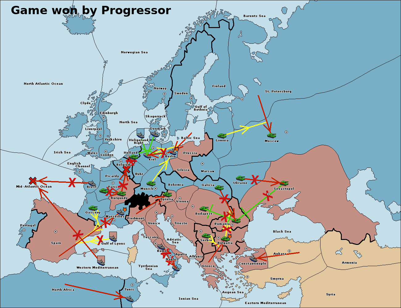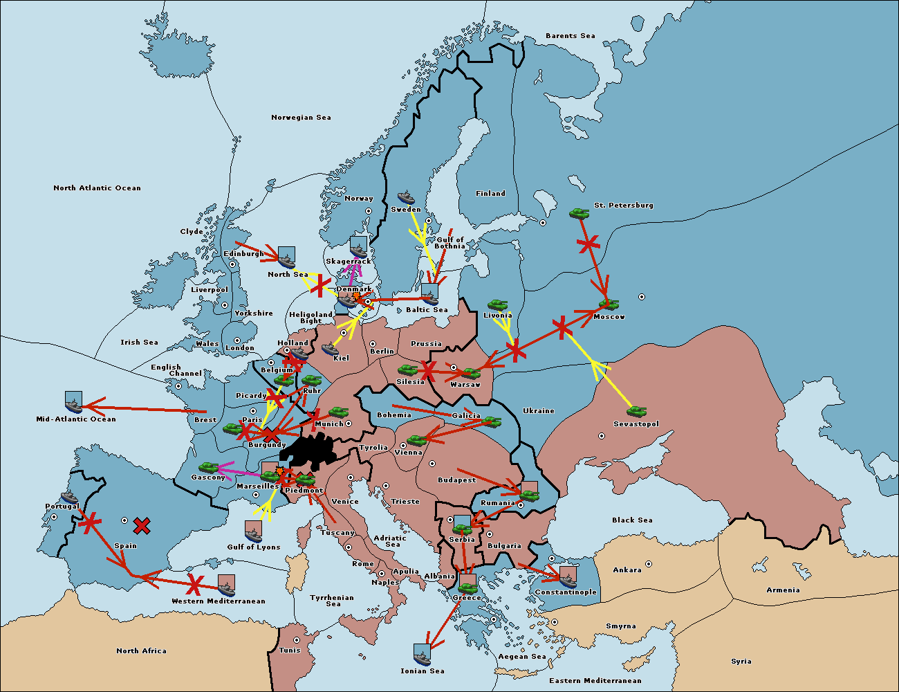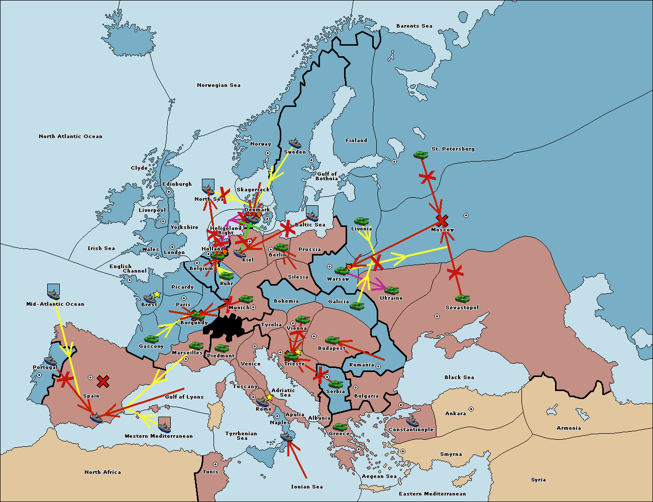 The fleet at Bulgaria (South Coast) move to Constantinople.
