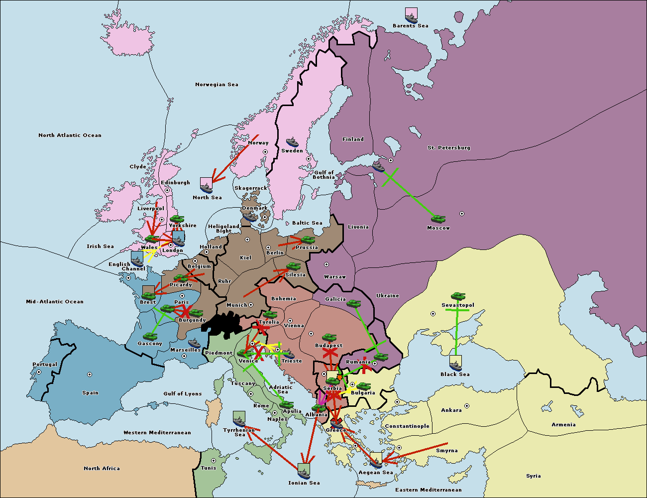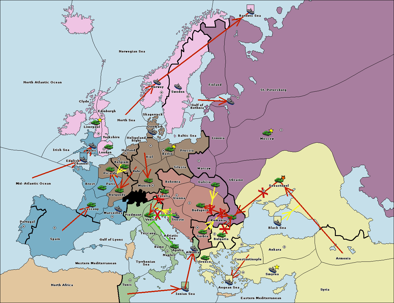 The army at Sevastopol support move to Rumania from Bulgaria.