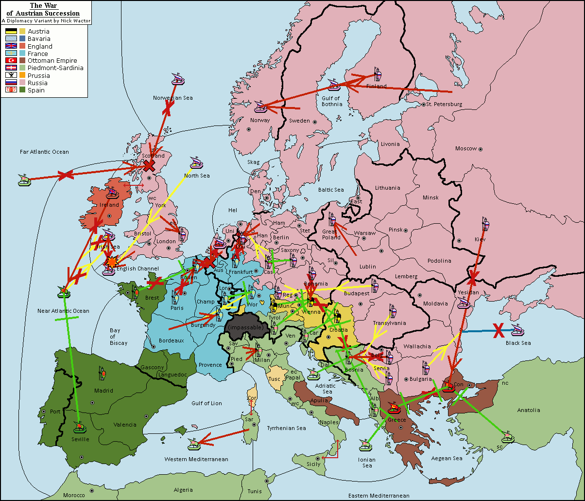 The fleet at Austrian Netherlands support move to Rouen from English Channel.