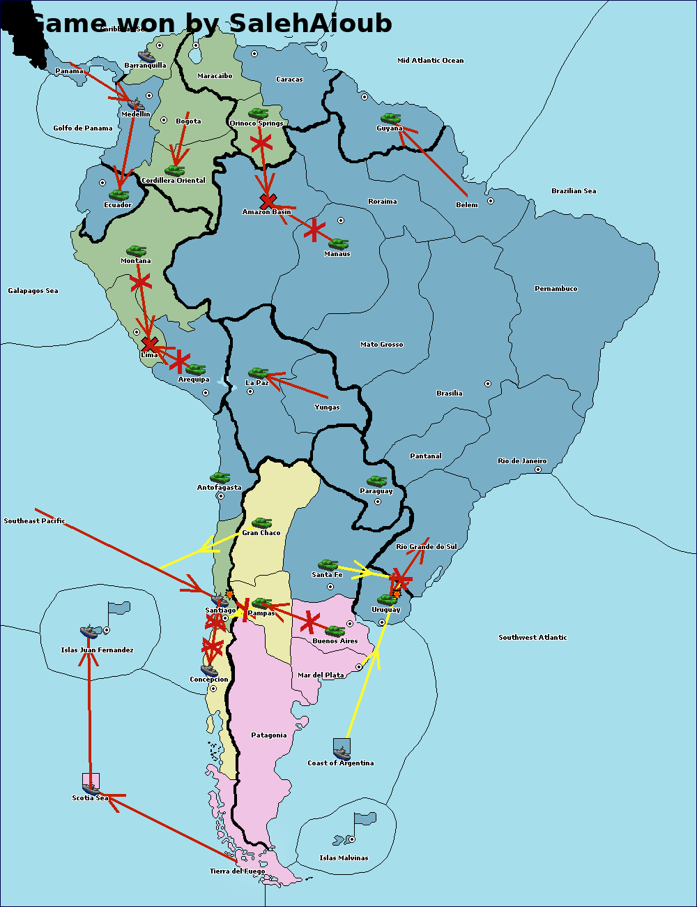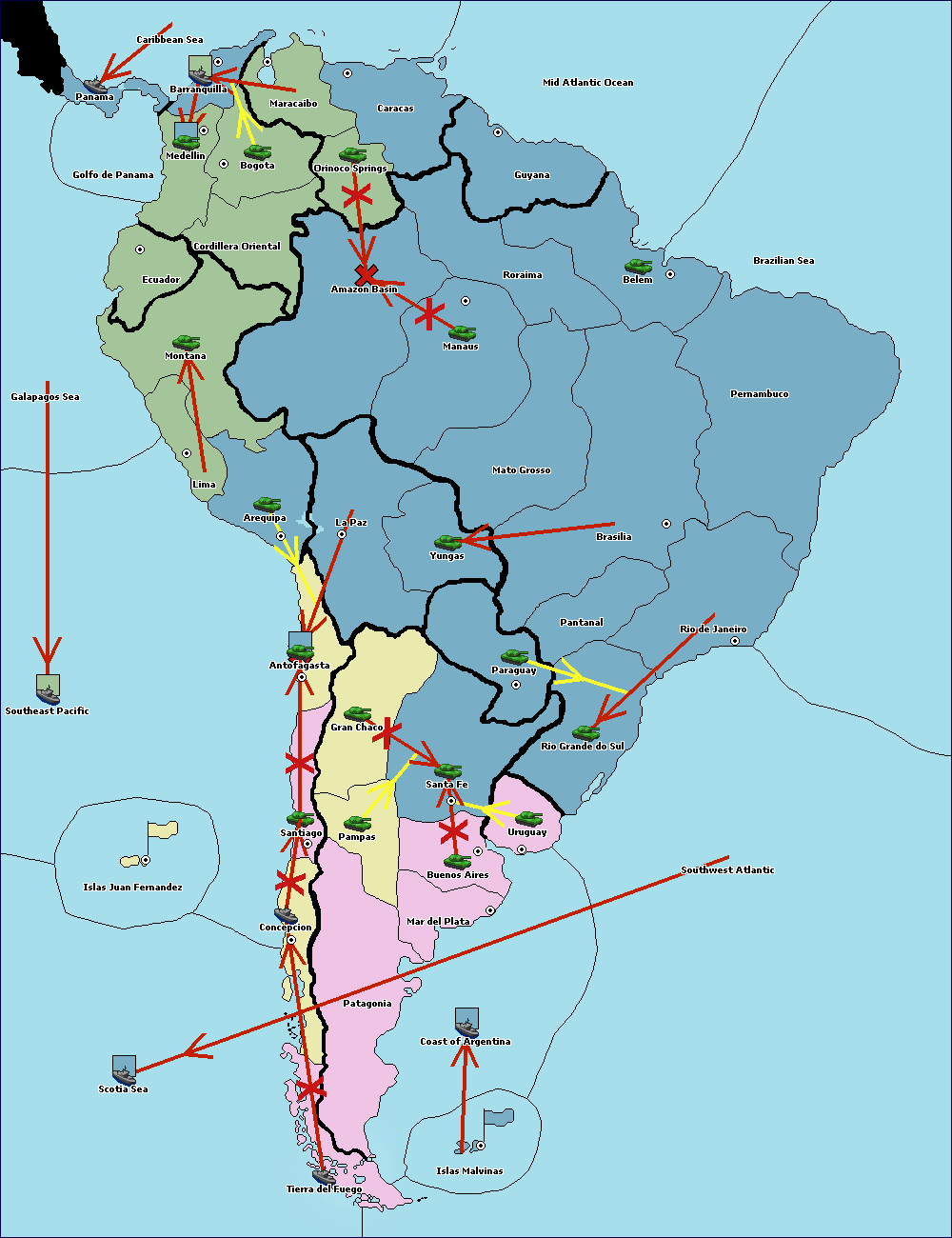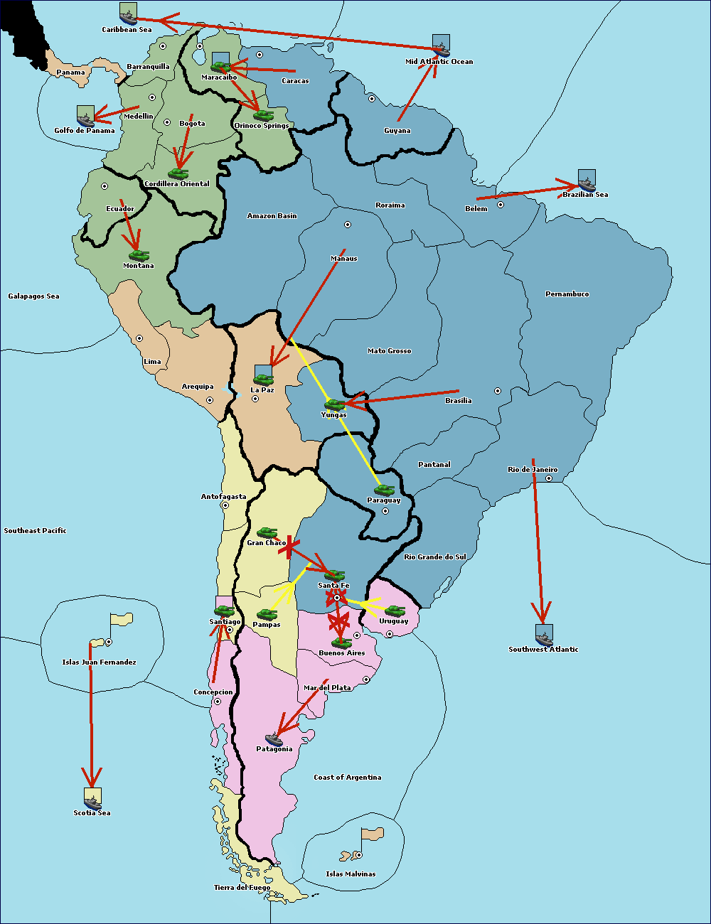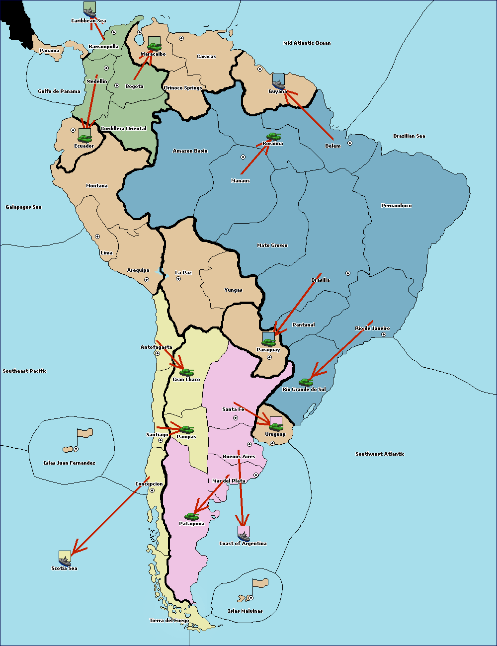 The army at Orinoco Springs move to Amazon Basin.