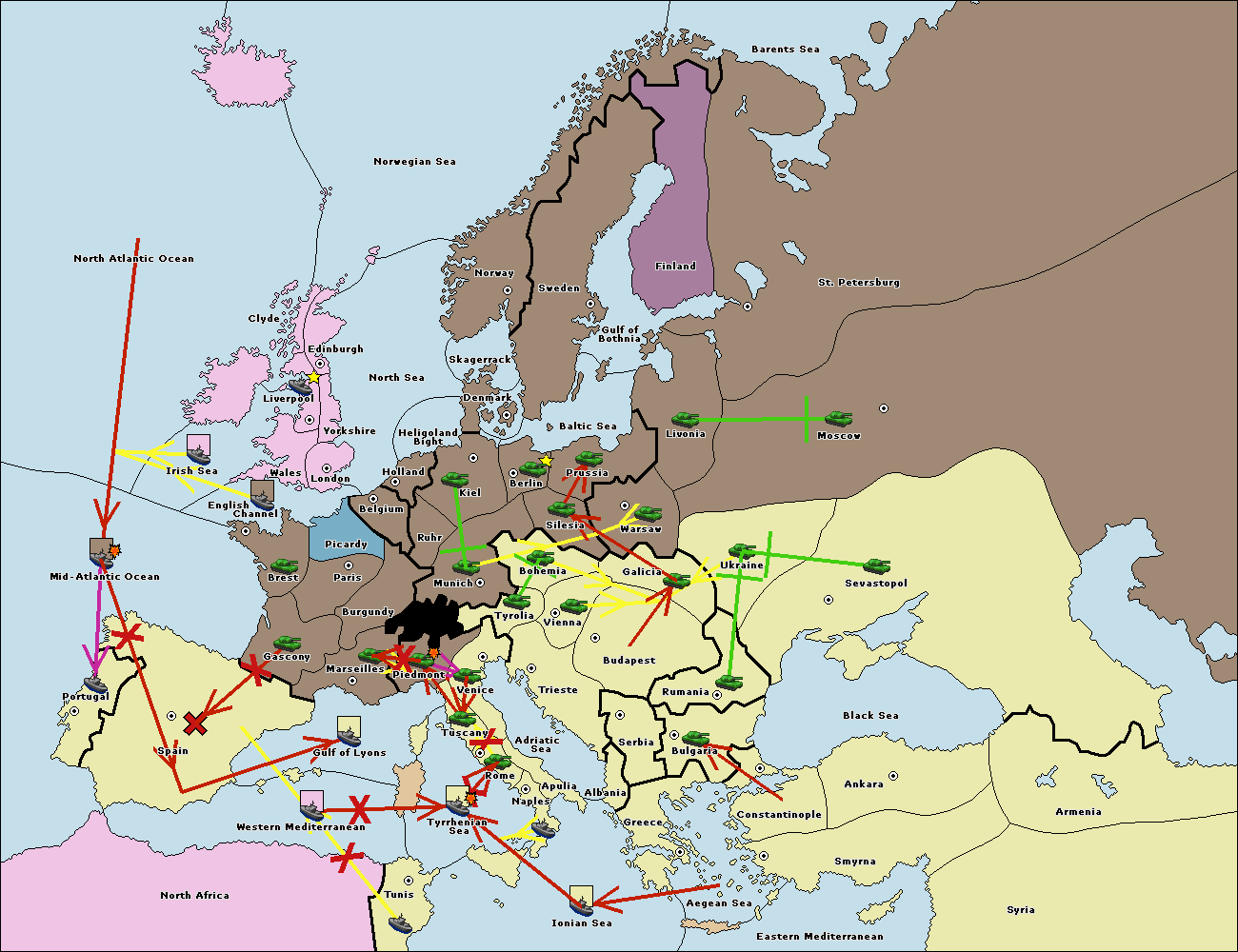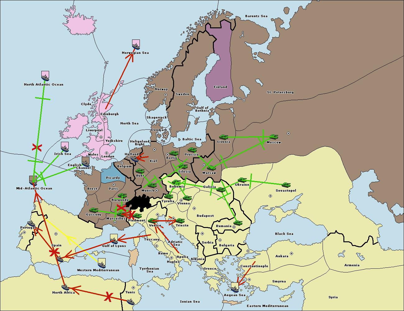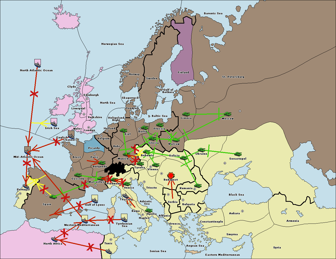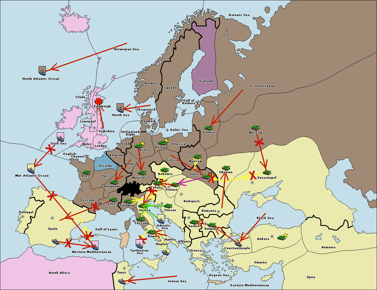 The fleet at Bulgaria (North Coast) support move to Black Sea from Constantinople.