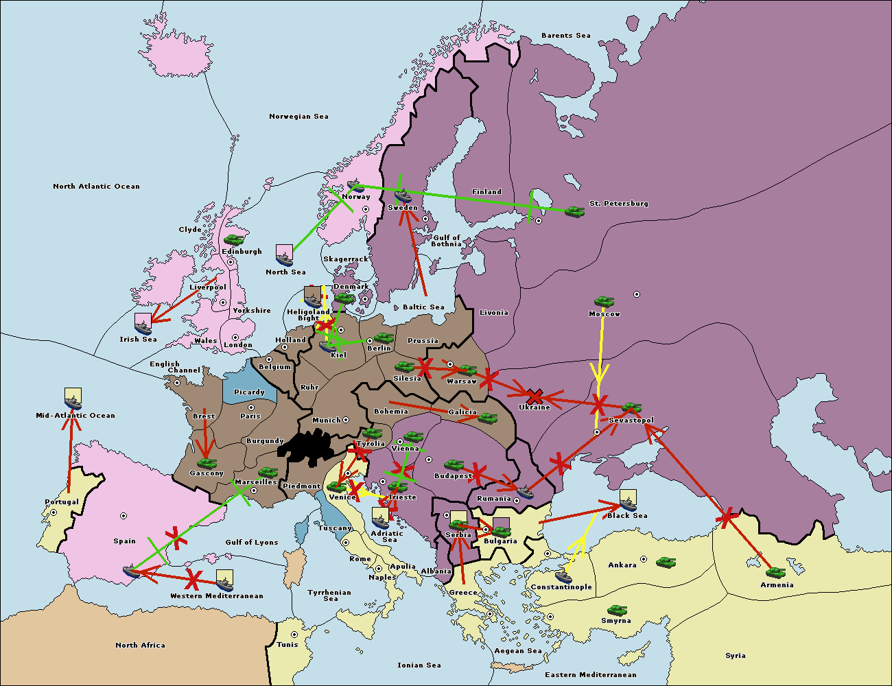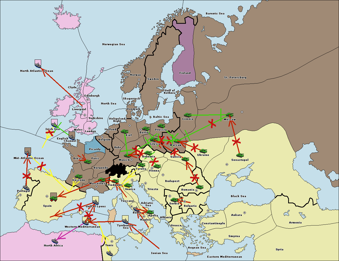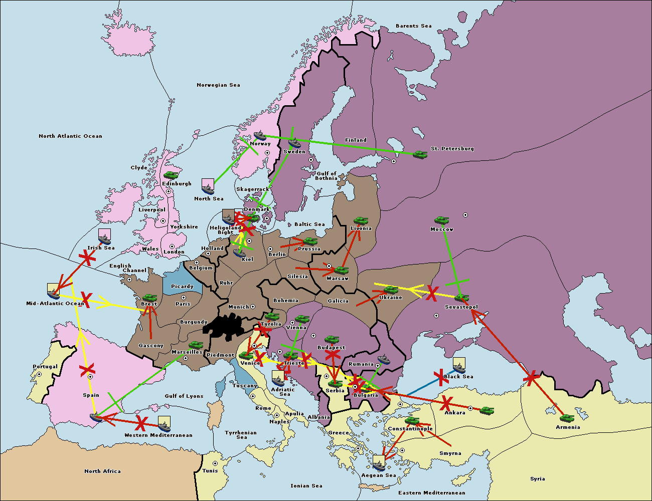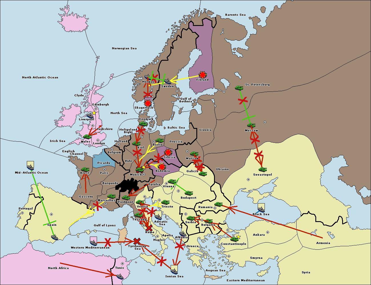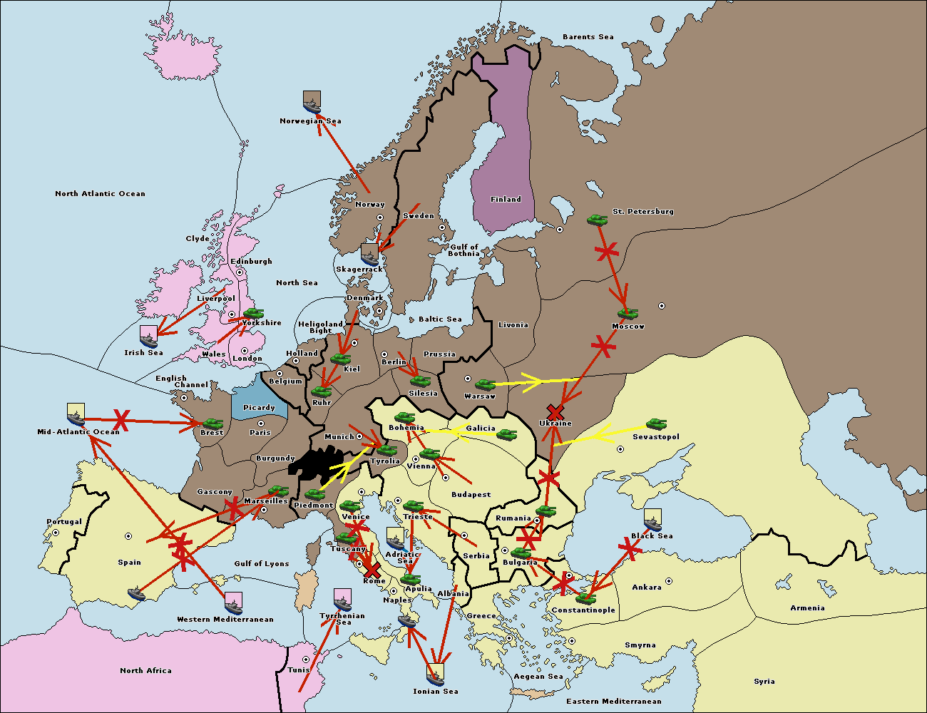 The fleet at Bulgaria (North Coast) support move to Black Sea from Constantinople.
