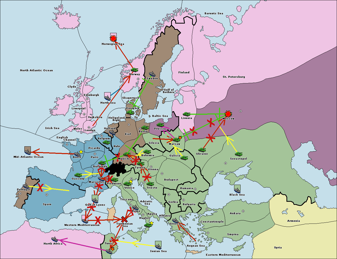 The fleet at Tyrrhenian Sea move to Western Mediterranean.