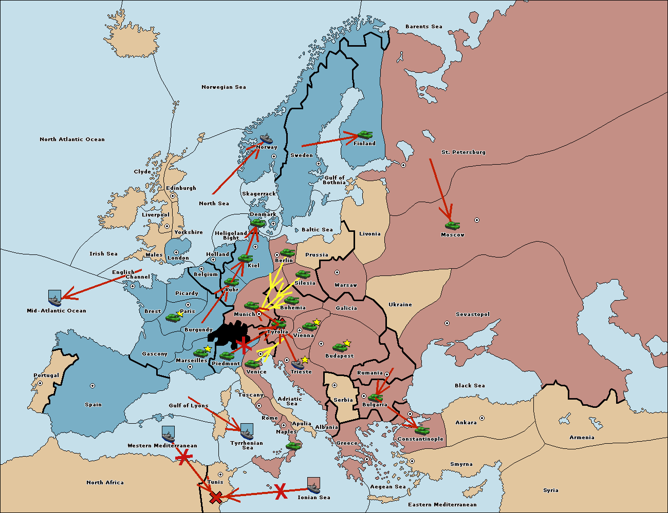 The fleet at Tyrrhenian Sea support move to Ionian Sea from Tunis.