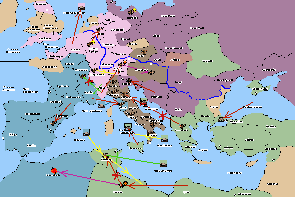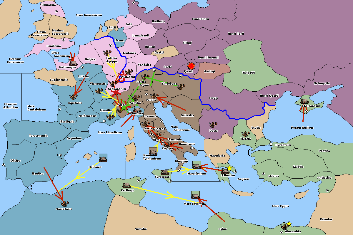 The army at Asdingi support move to Hunni Secundi from Visigothi.