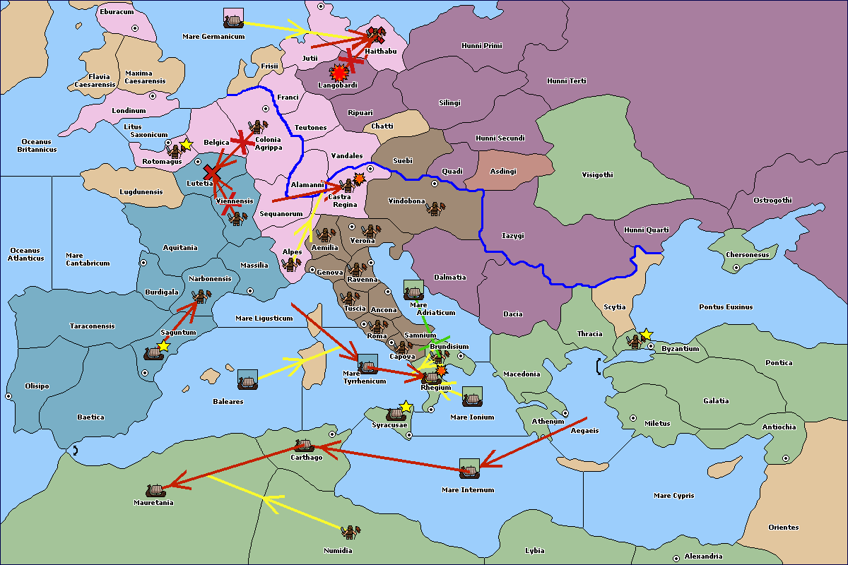 The fleet at Eburacum (East Coast) move to Mare Germanicum.