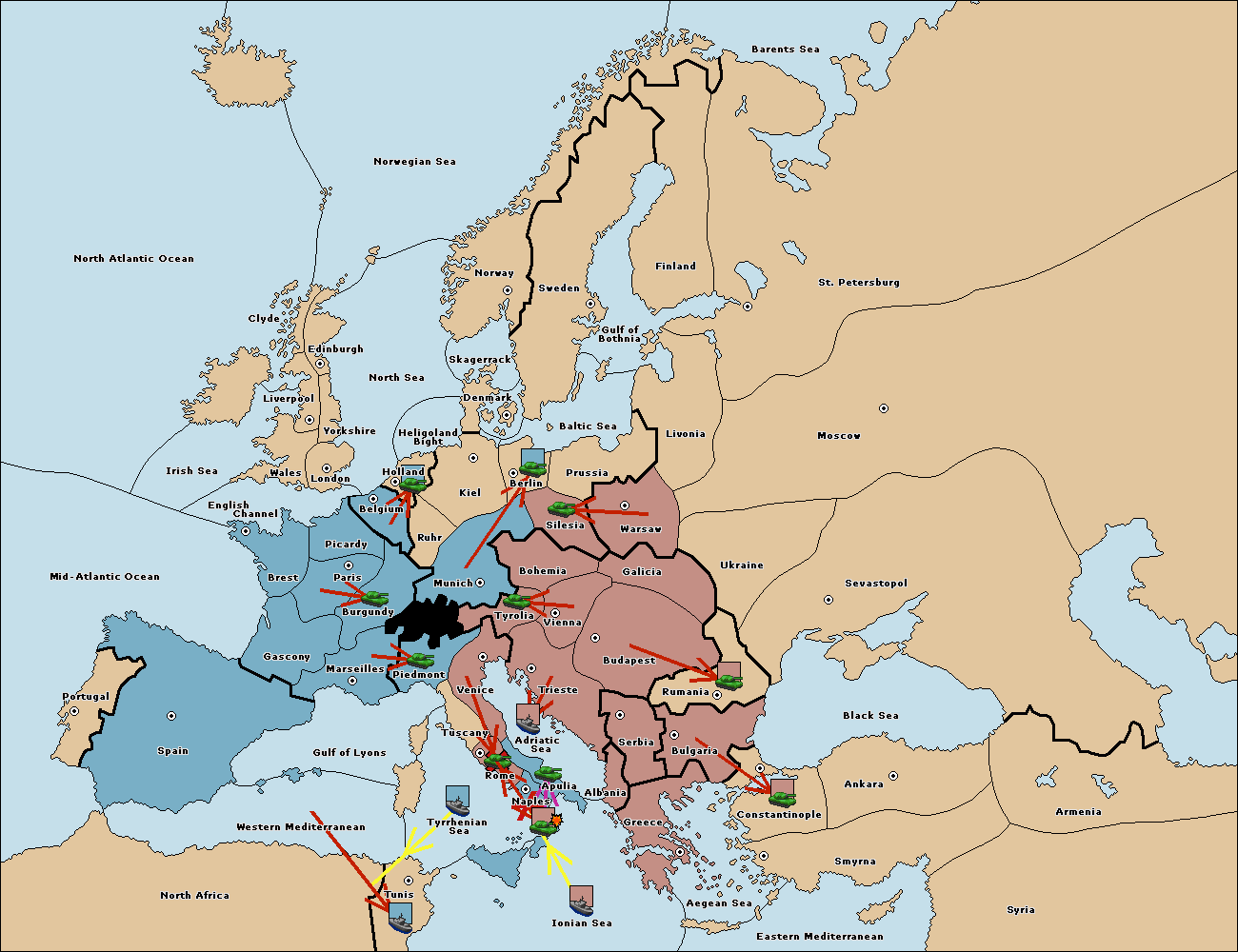 The fleet at Tyrrhenian Sea support move to Naples from Ionian Sea.