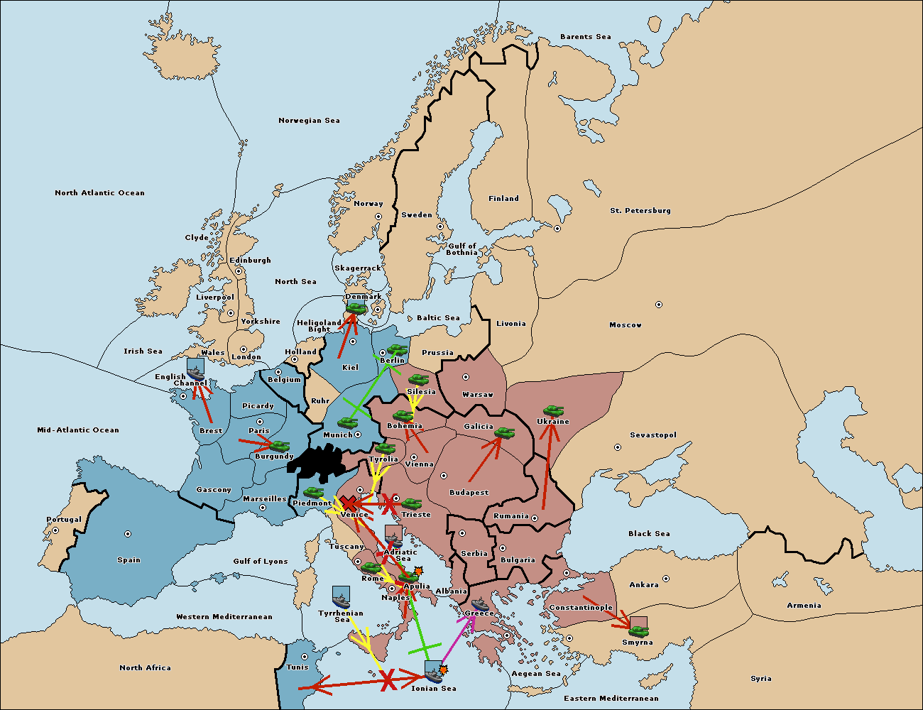 The fleet at Tyrrhenian Sea support move to Ionian Sea from Tunis.