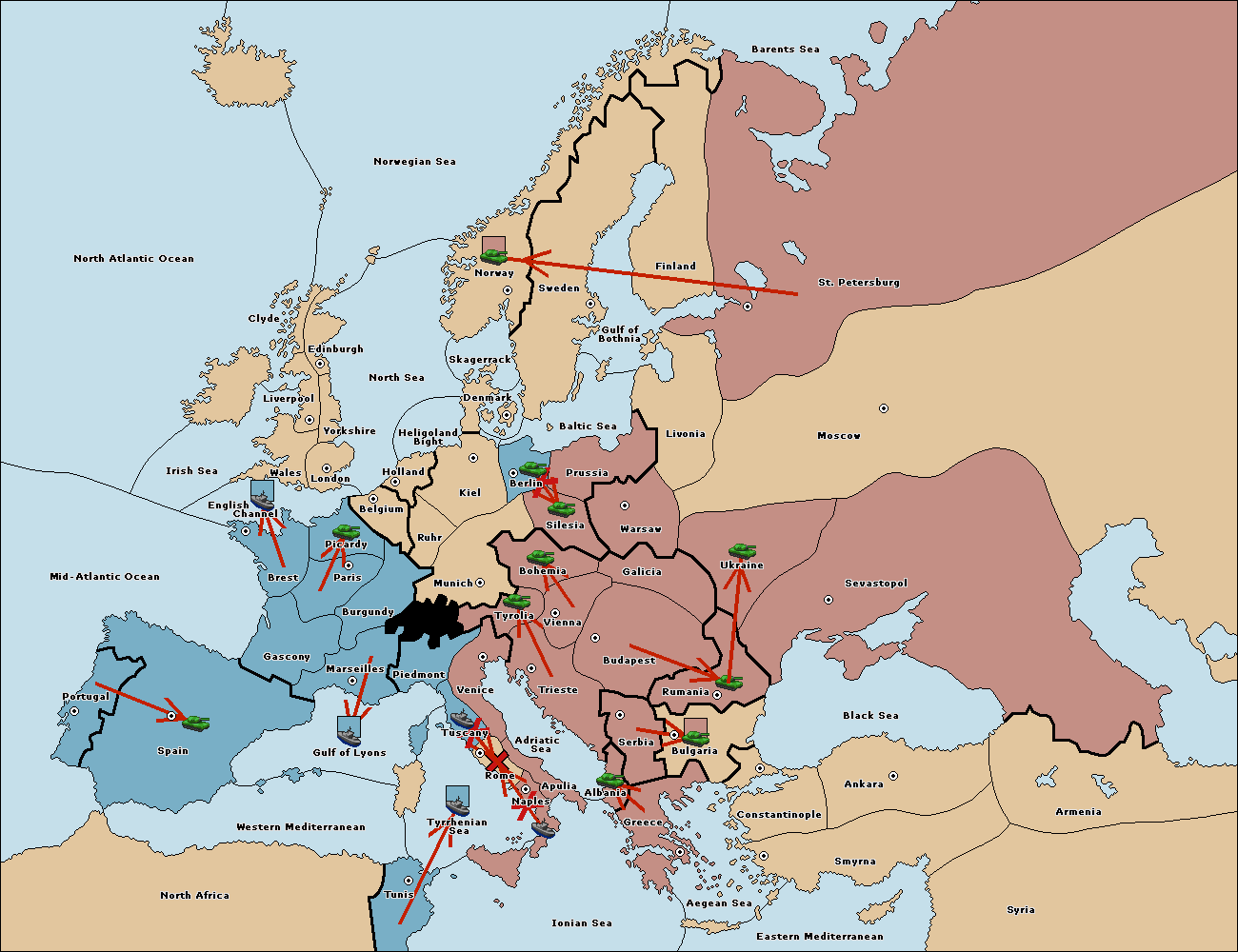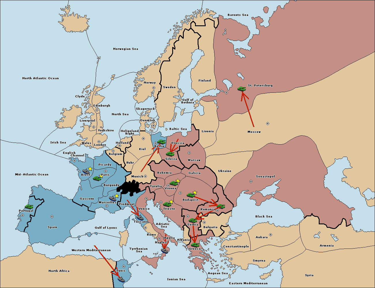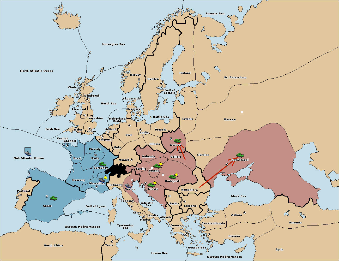 The fleet at Mid-Atlantic Ocean move to Western Mediterranean.