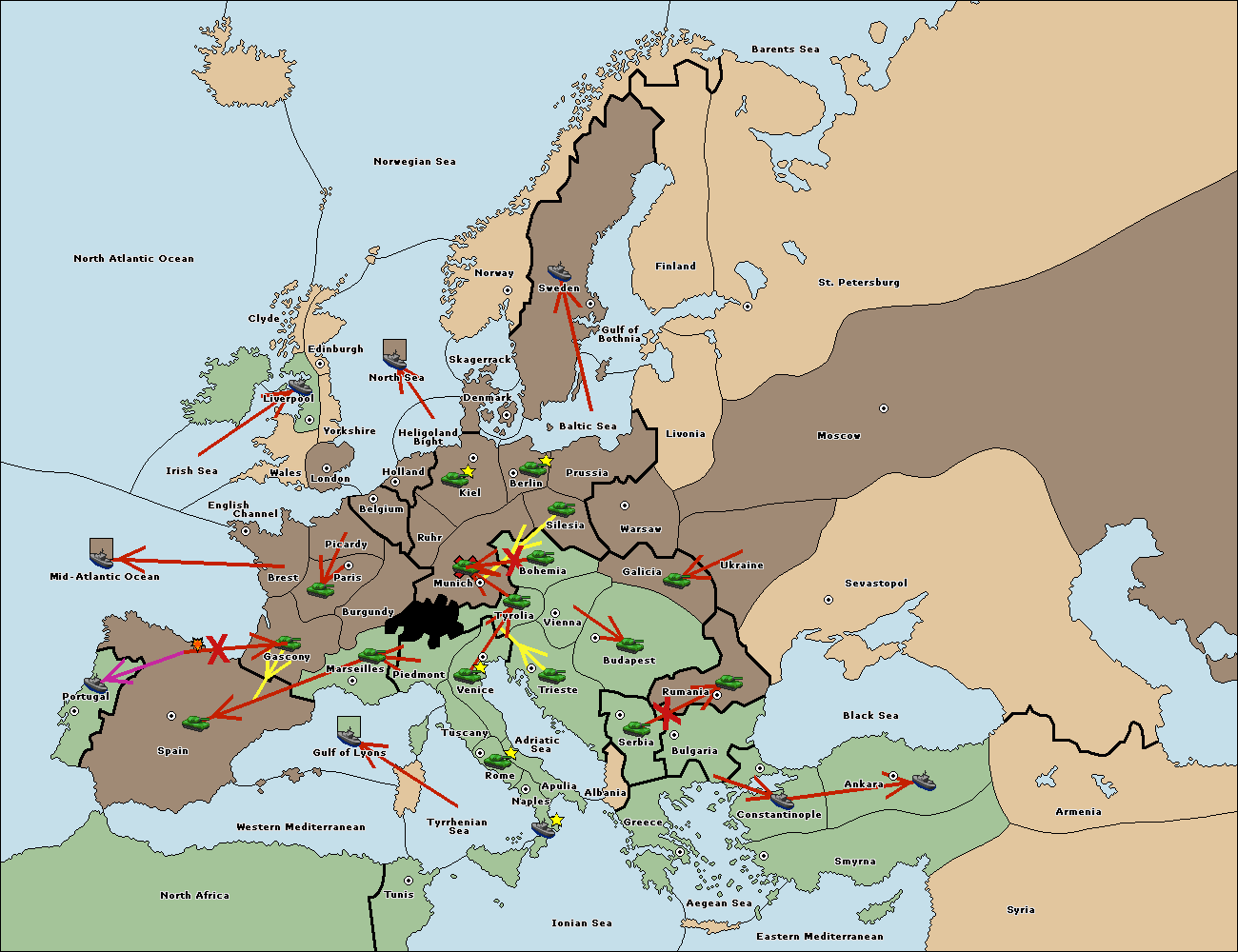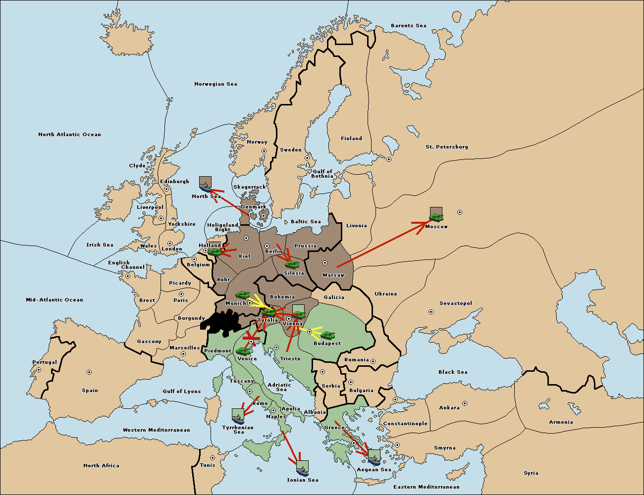 The fleet at Bulgaria (South Coast) move to Constantinople.
