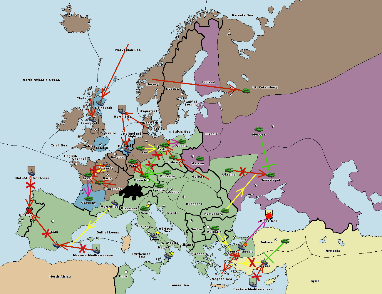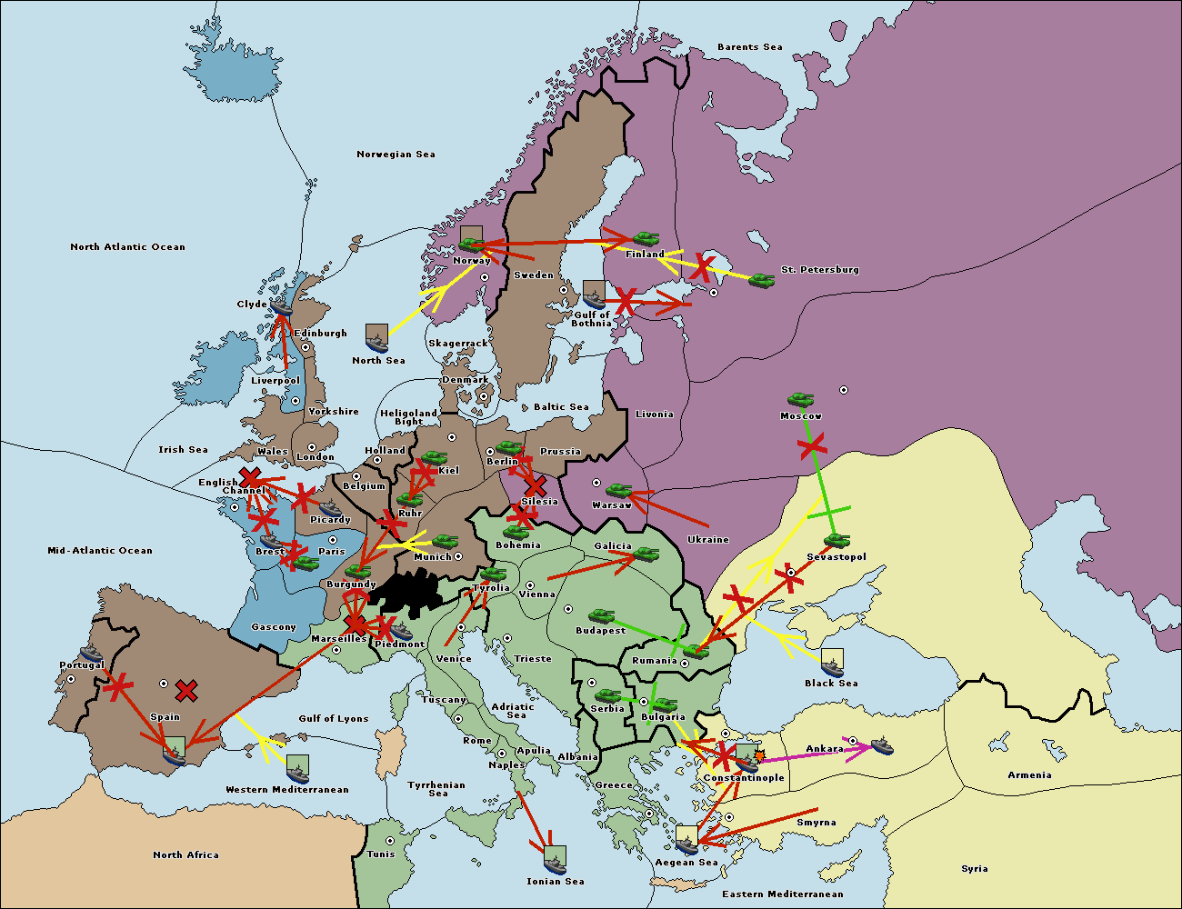 The fleet at Ankara support move to Black Sea from Constantinople.