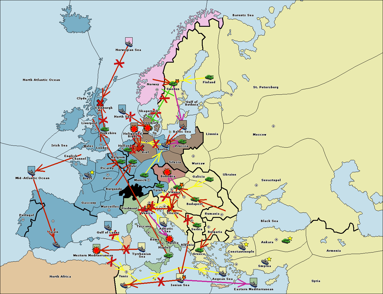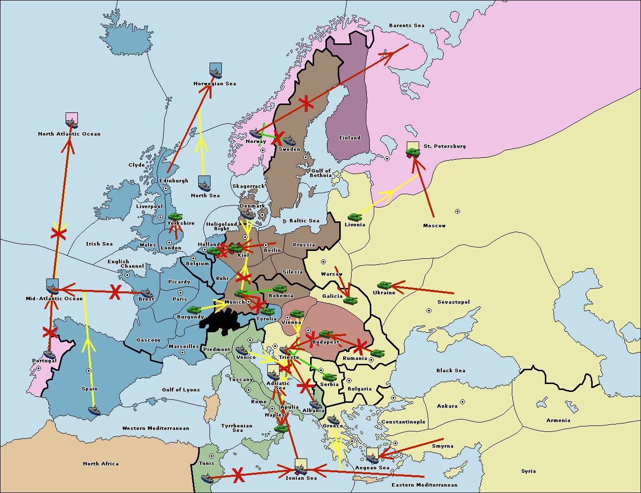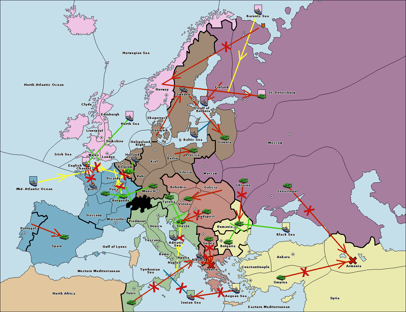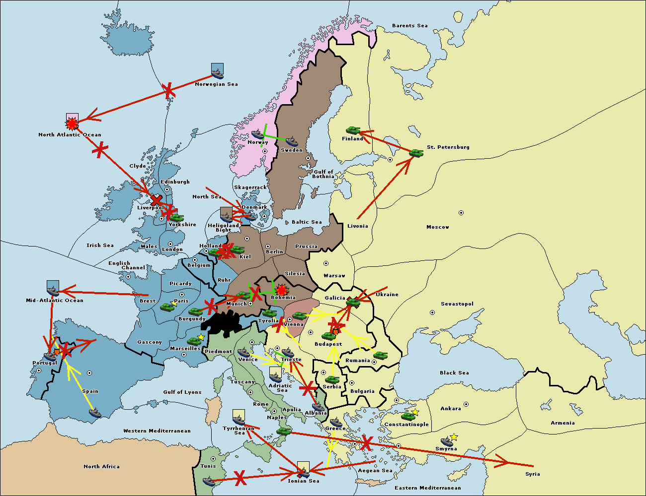 The fleet at Mid-Atlantic Ocean move to Western Mediterranean.