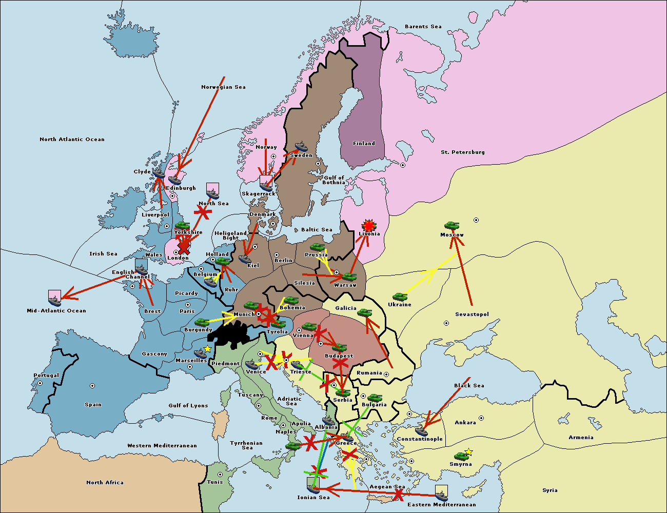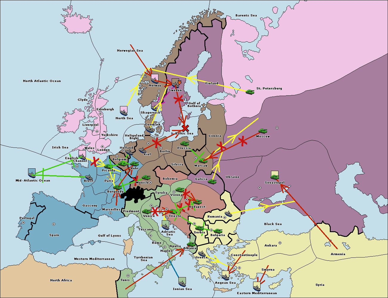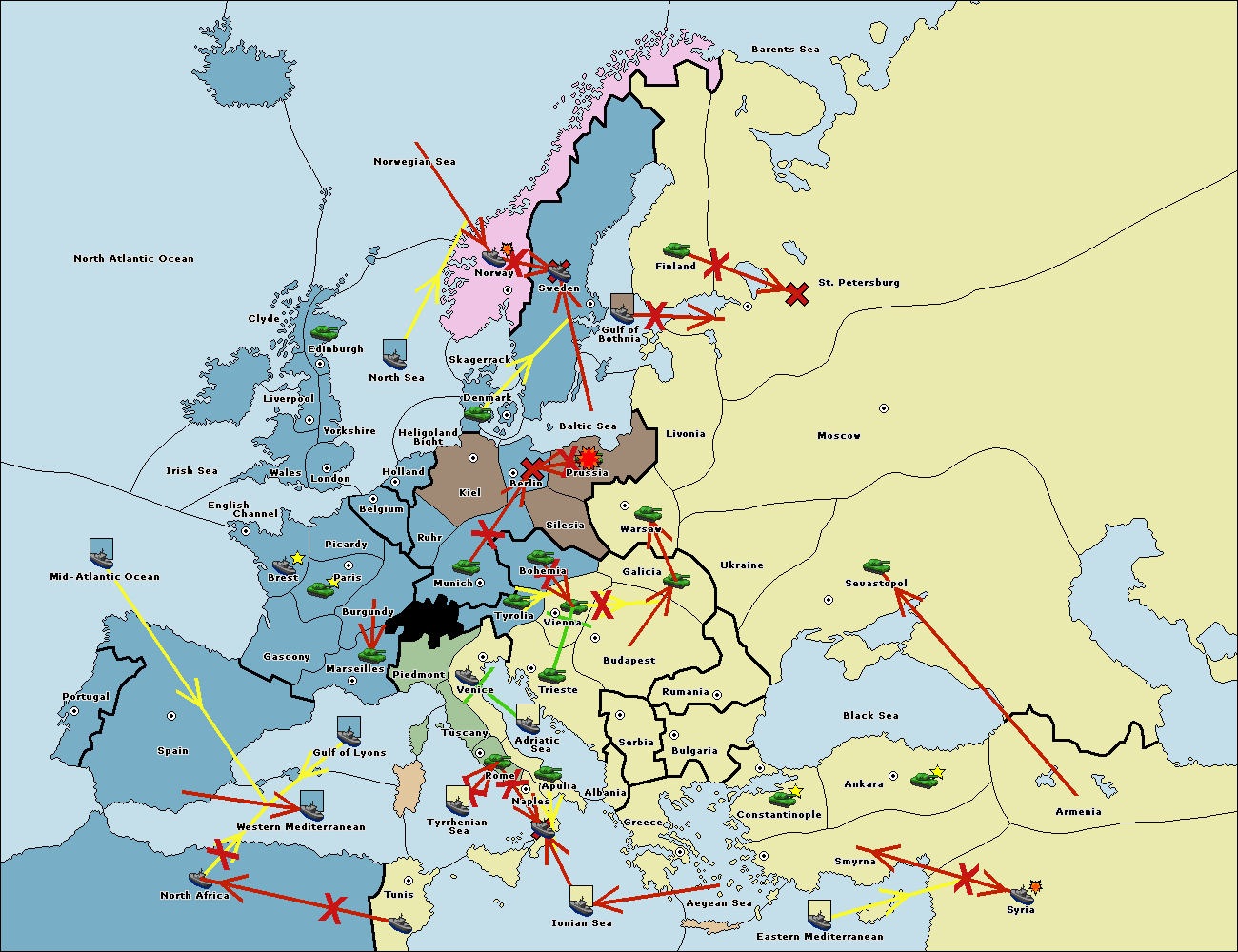 The fleet at Mid-Atlantic Ocean move to Western Mediterranean.