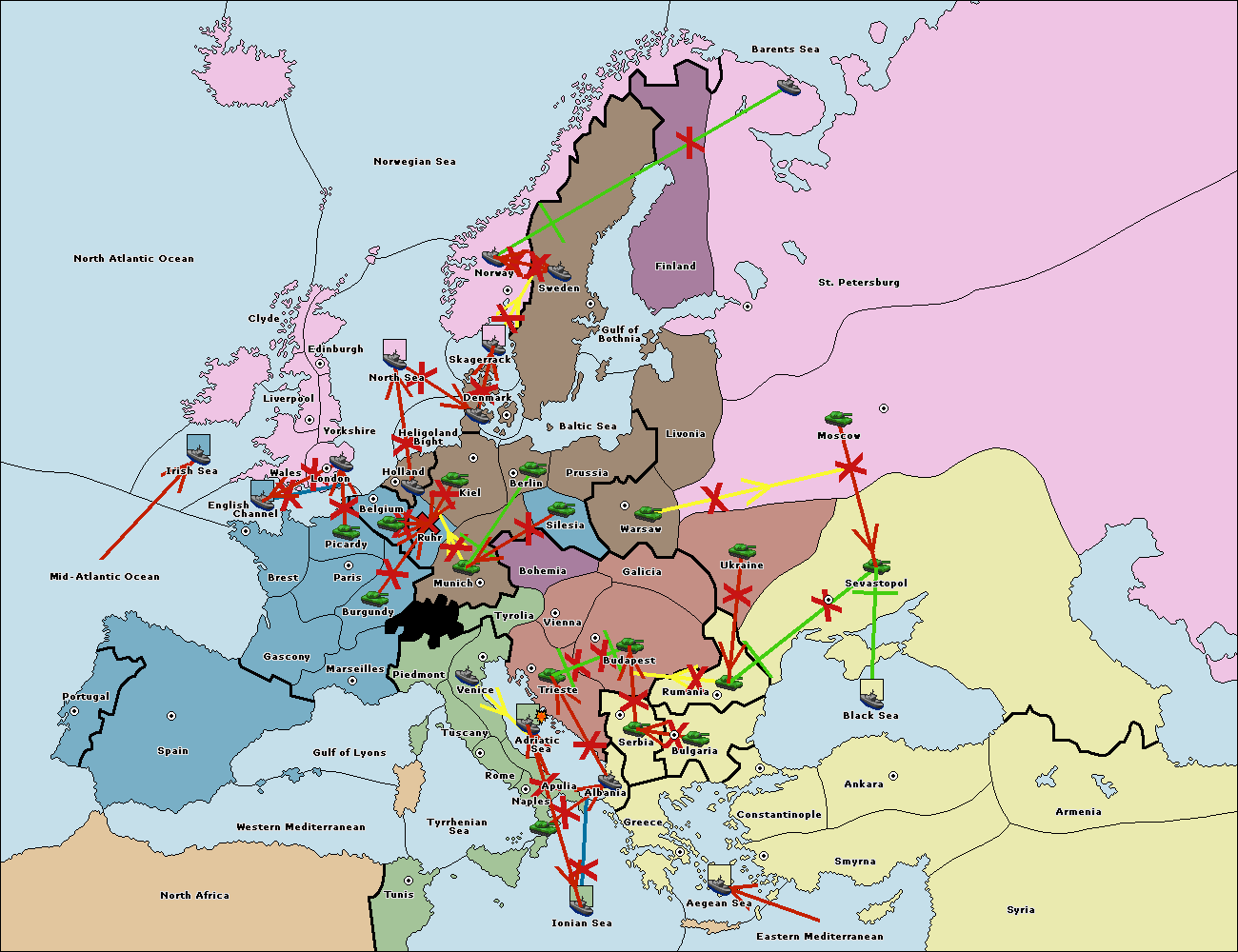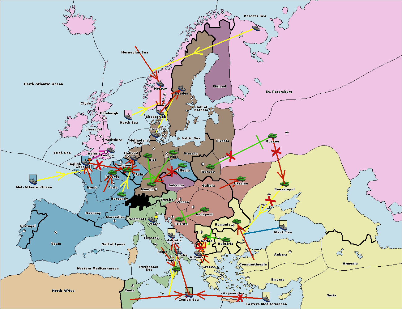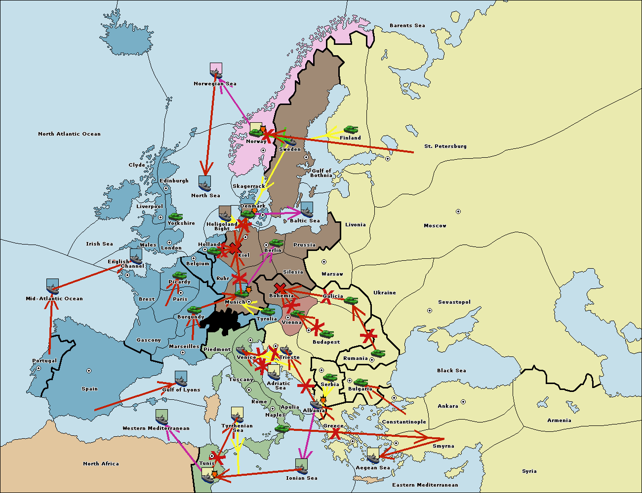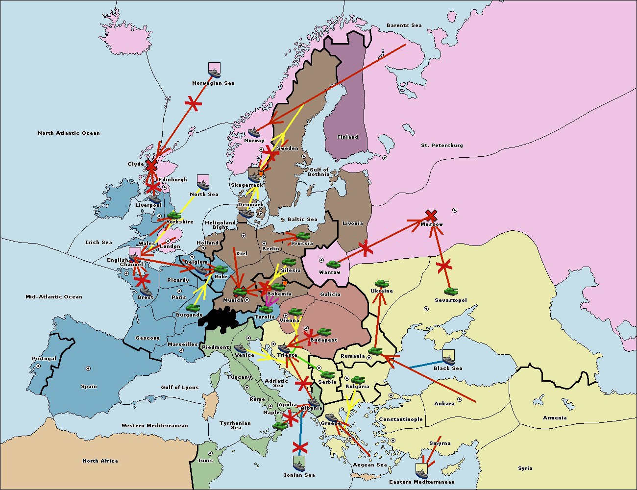 The fleet at Mid-Atlantic Ocean move to Western Mediterranean.
