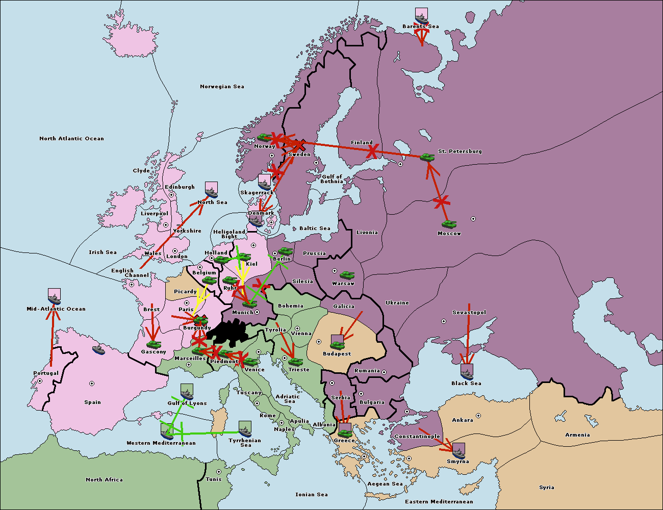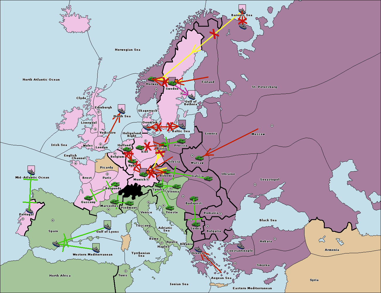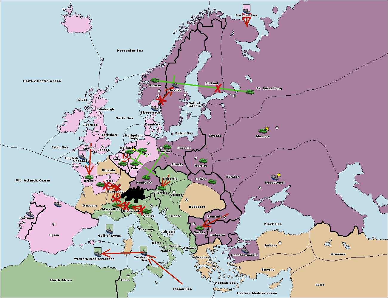The fleet at Bulgaria (North Coast) move to Constantinople.