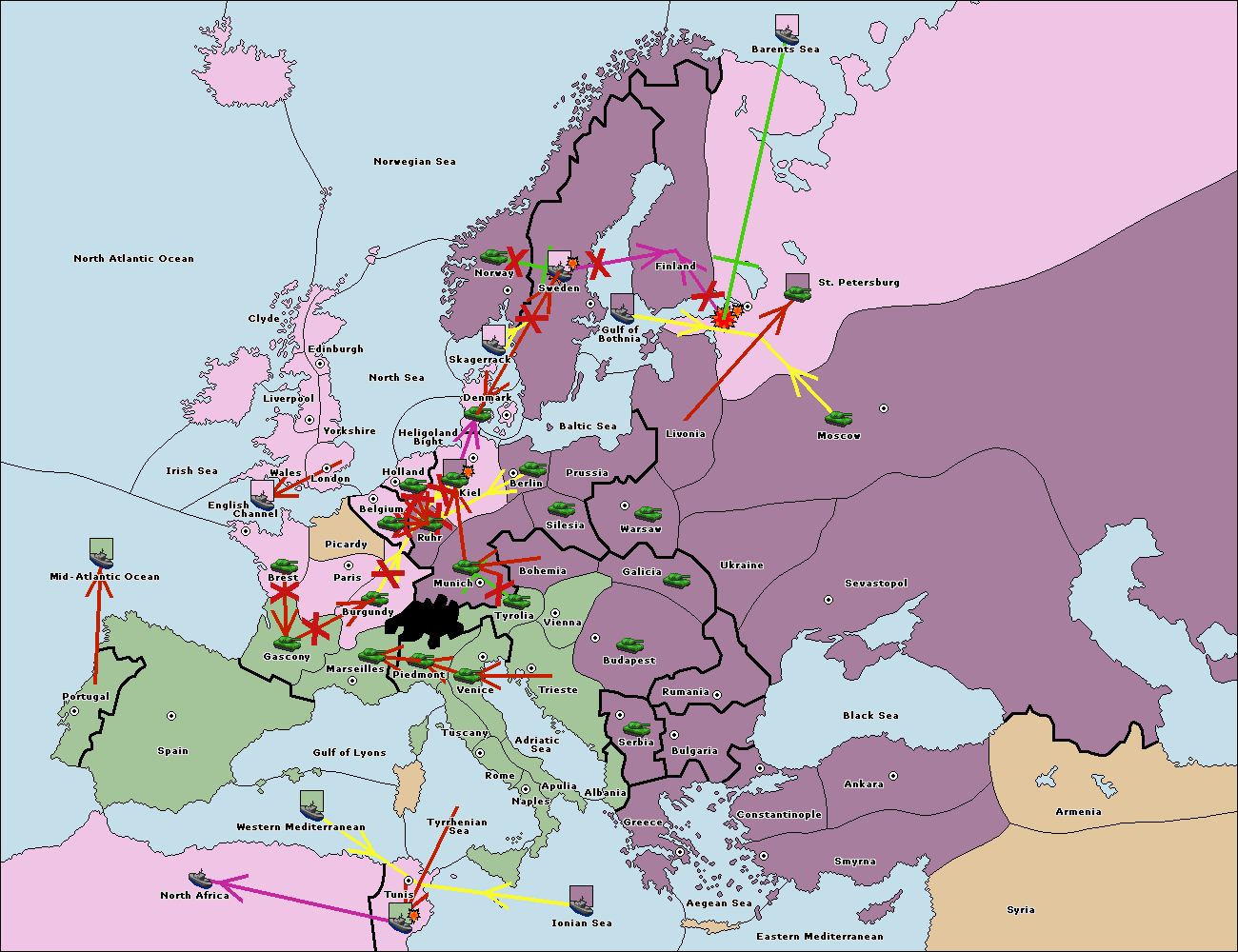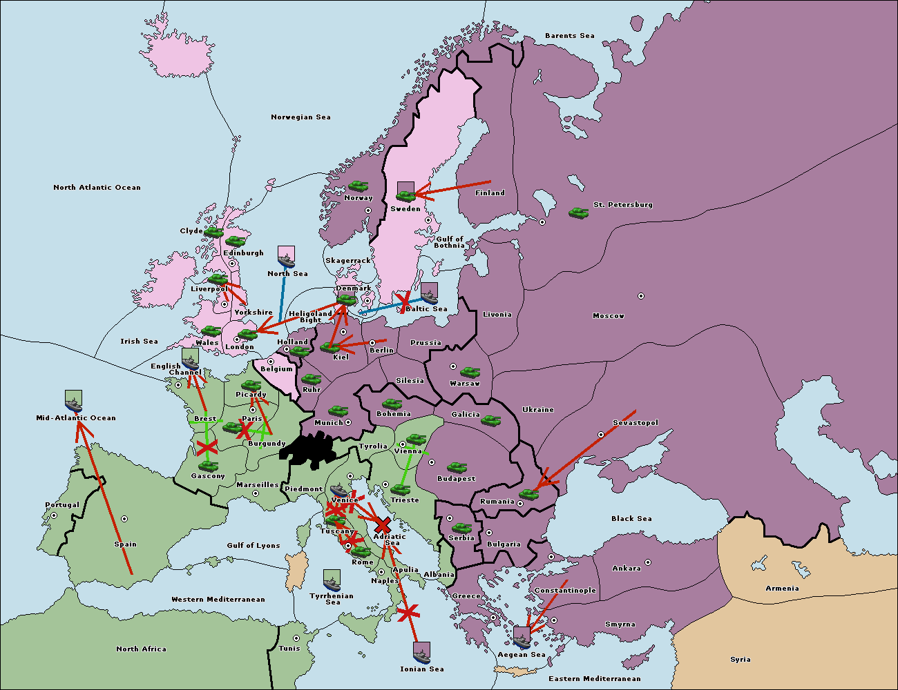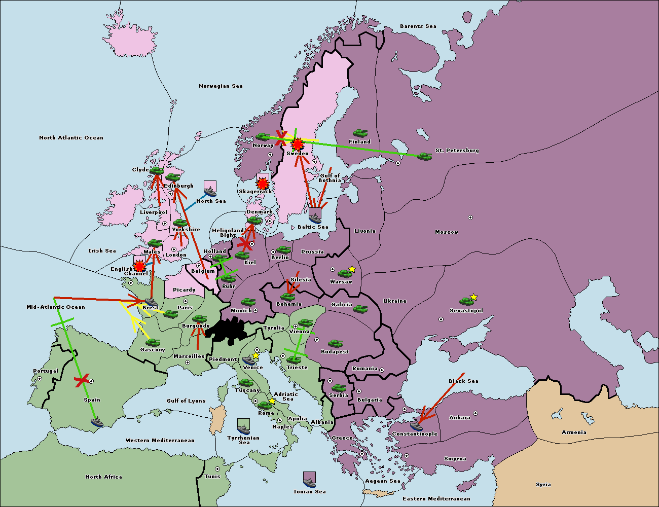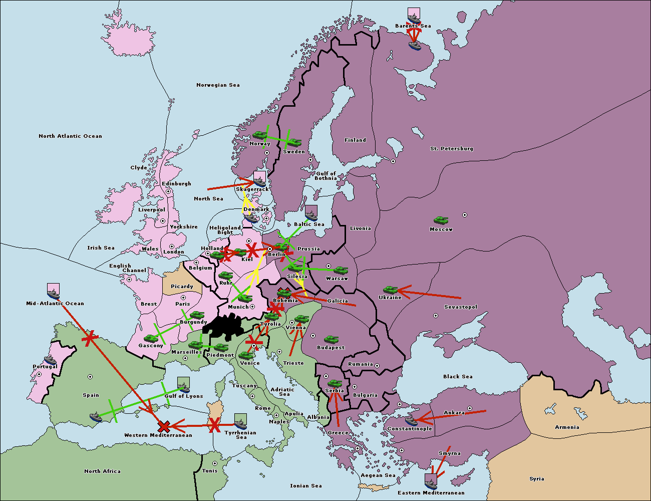 The fleet at Bulgaria (North Coast) move to Constantinople.