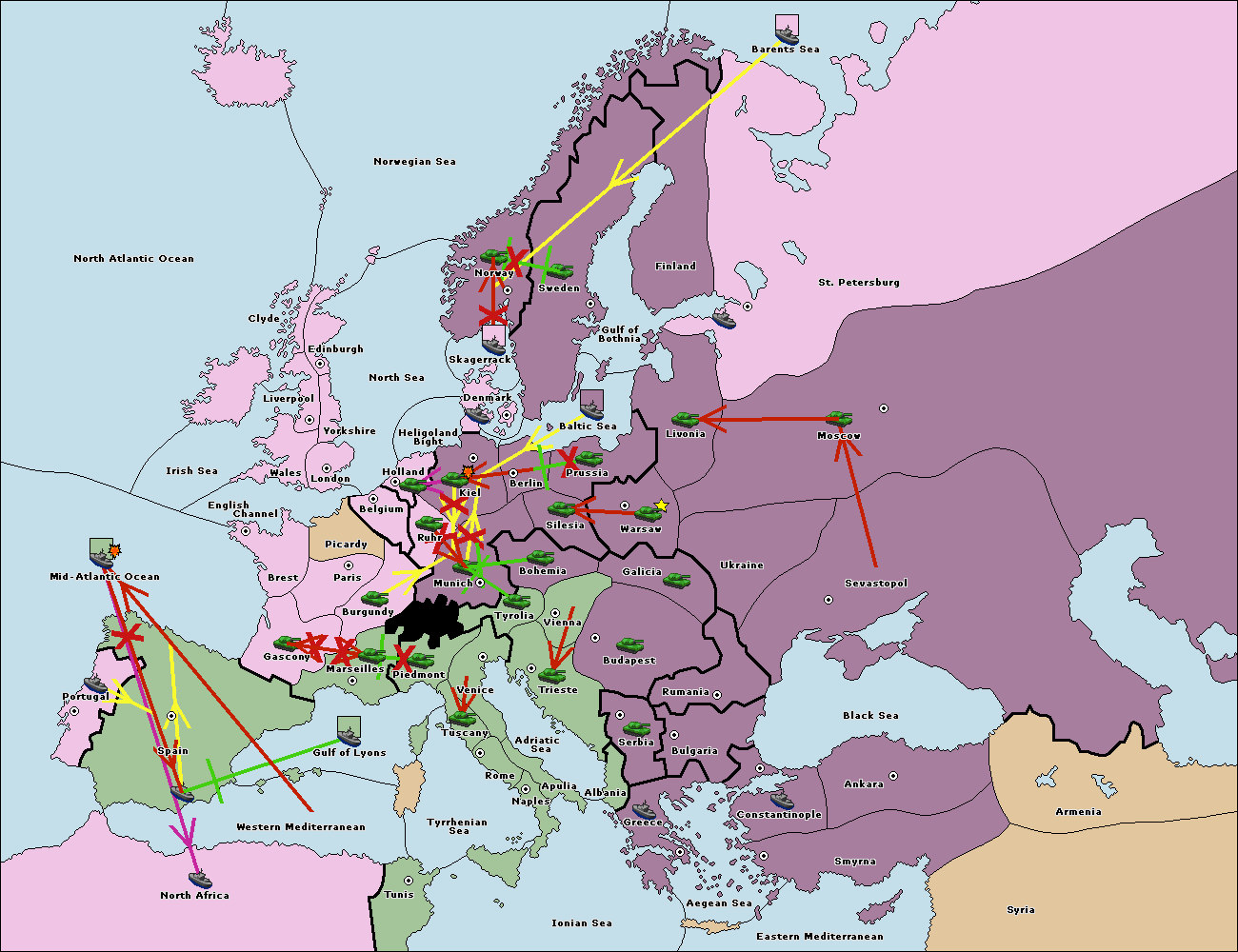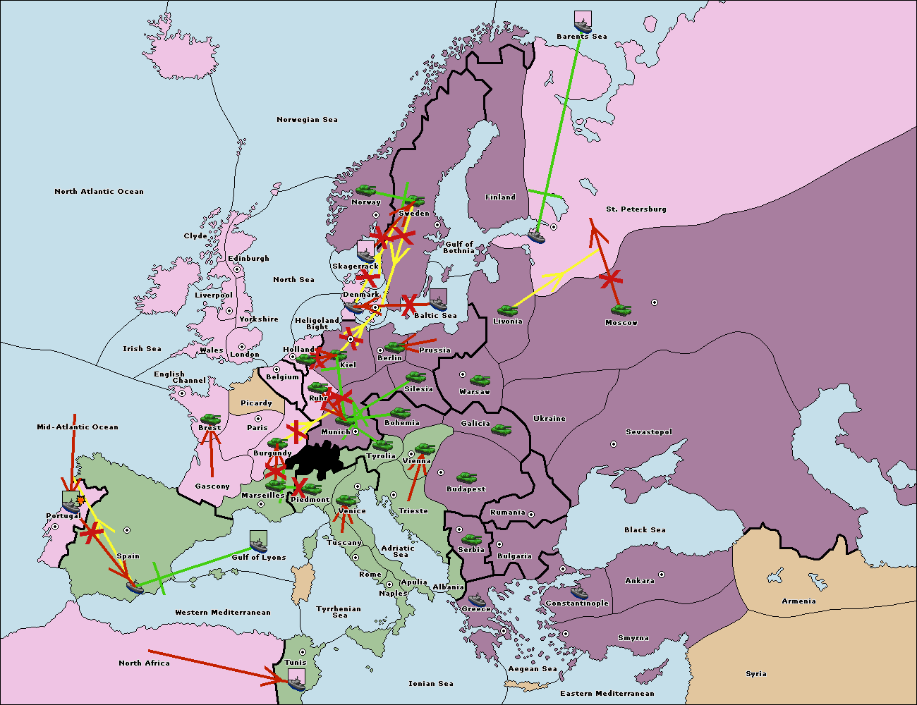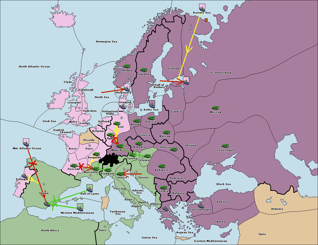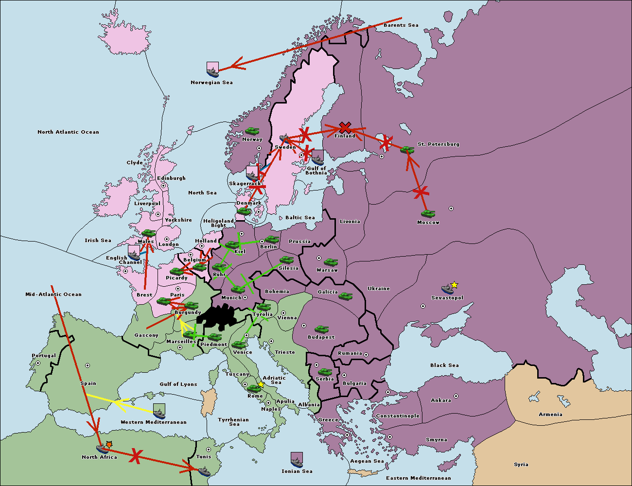The fleet at Mid-Atlantic Ocean move to Western Mediterranean.
