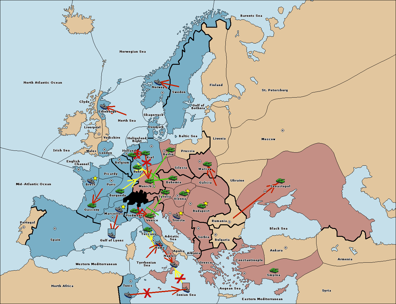 The fleet at Spain (South Coast) move to Western Mediterranean.