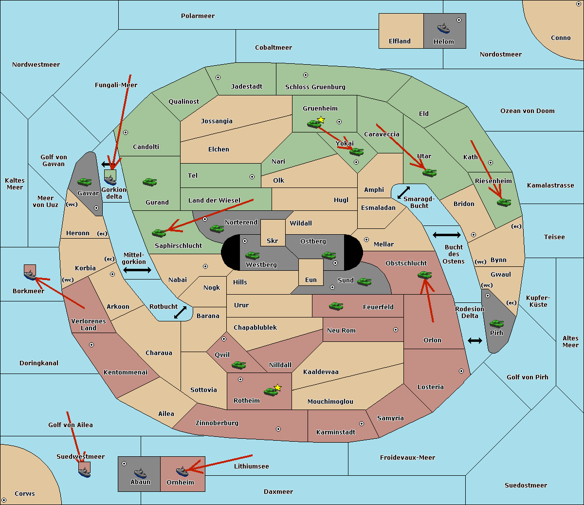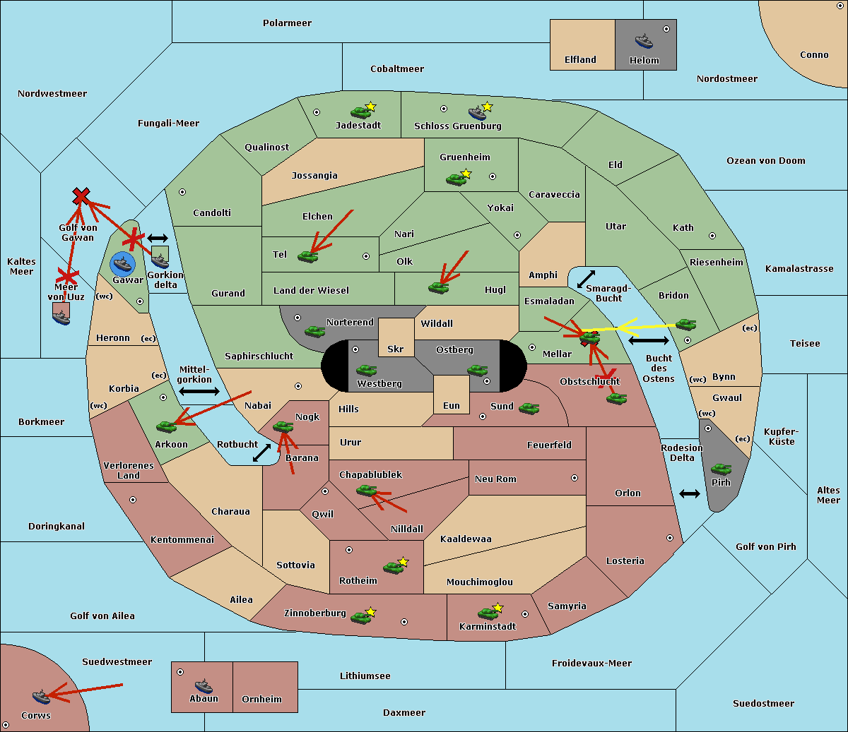 The fleet at Schloss Gruenburg move to Ozean von Doom.