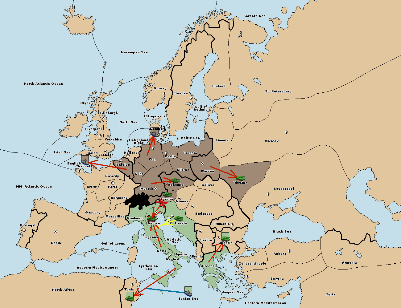 The fleet at Brest move to Mid-Atlantic Ocean.