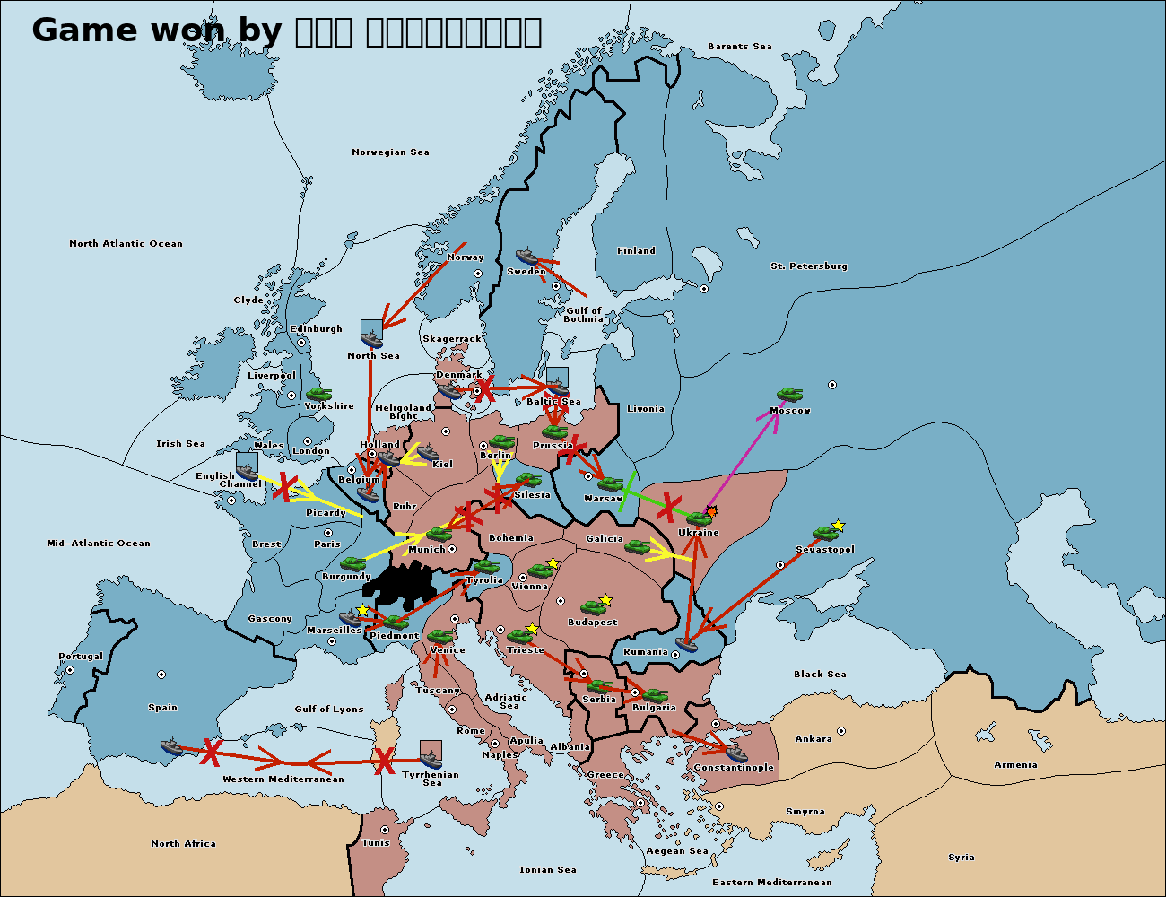 The fleet at Bulgaria (South Coast) move to Constantinople.
