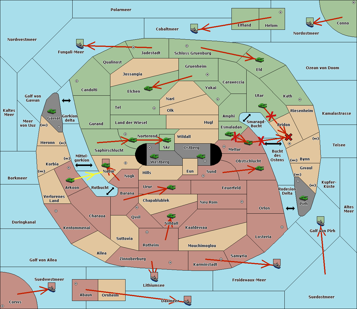 The fleet at Schloss Gruenburg move to Ozean von Doom.