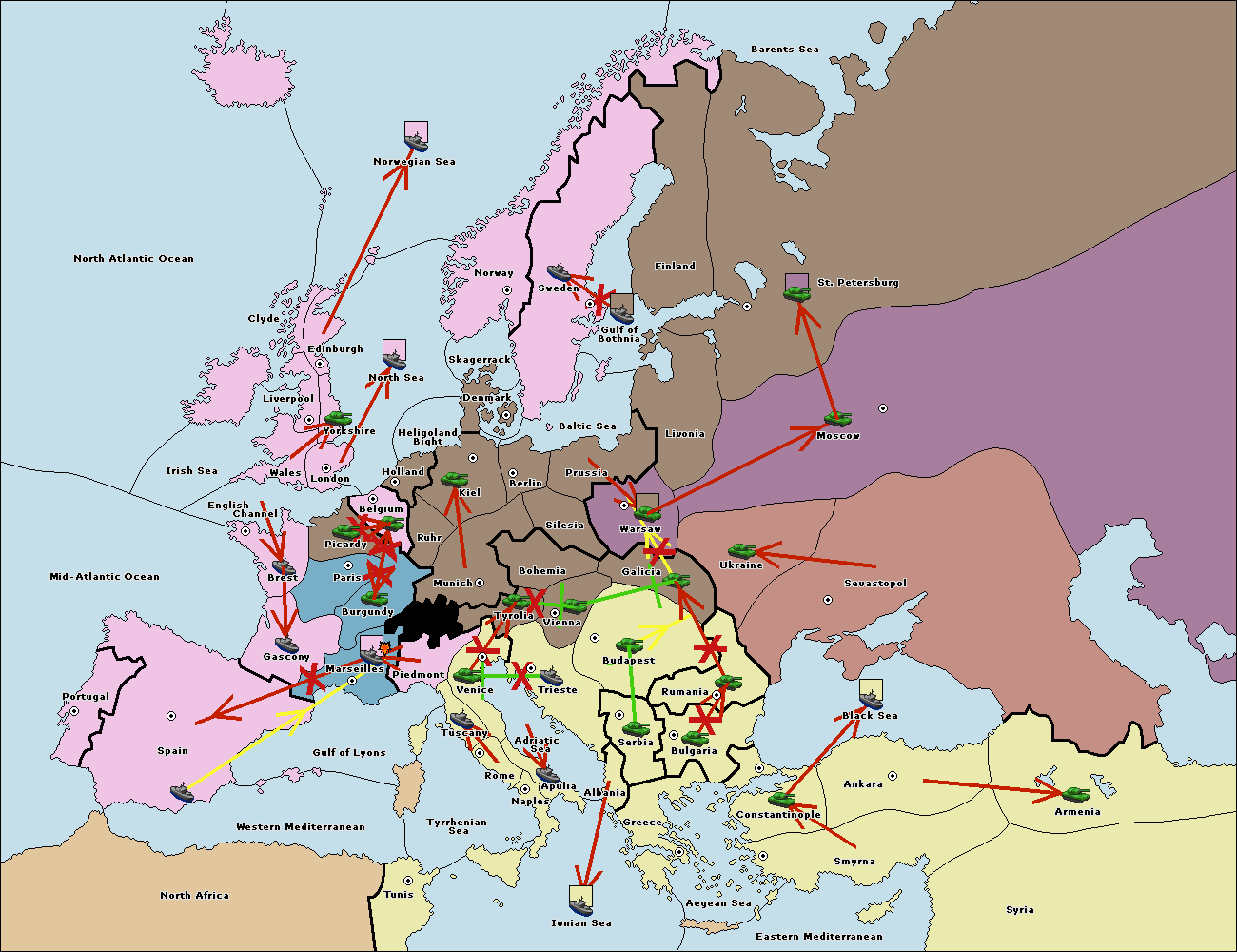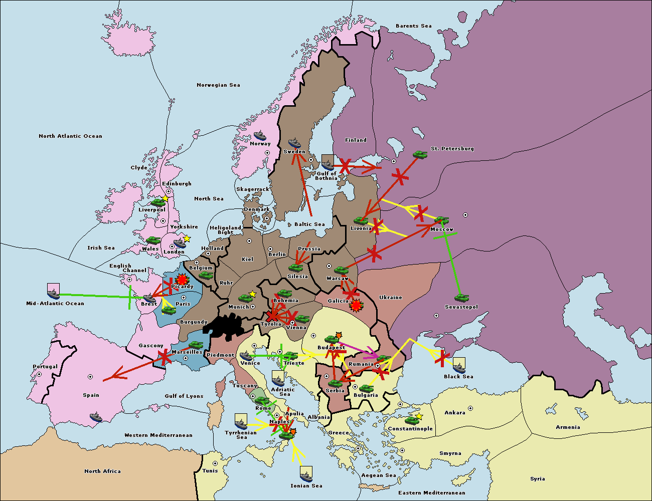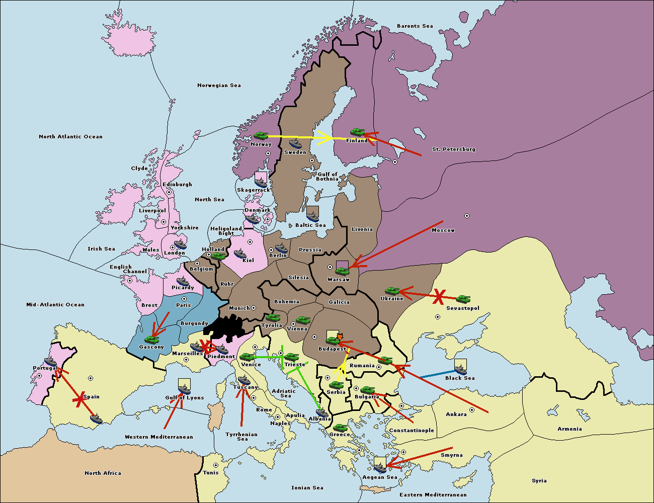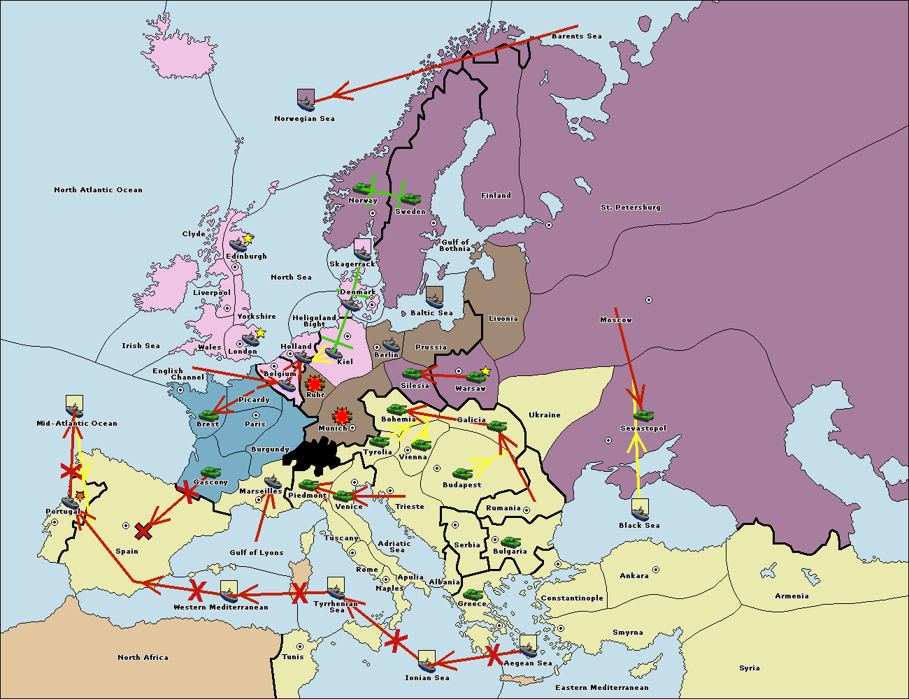 The fleet at Tyrrhenian Sea support move to Naples from Ionian Sea.