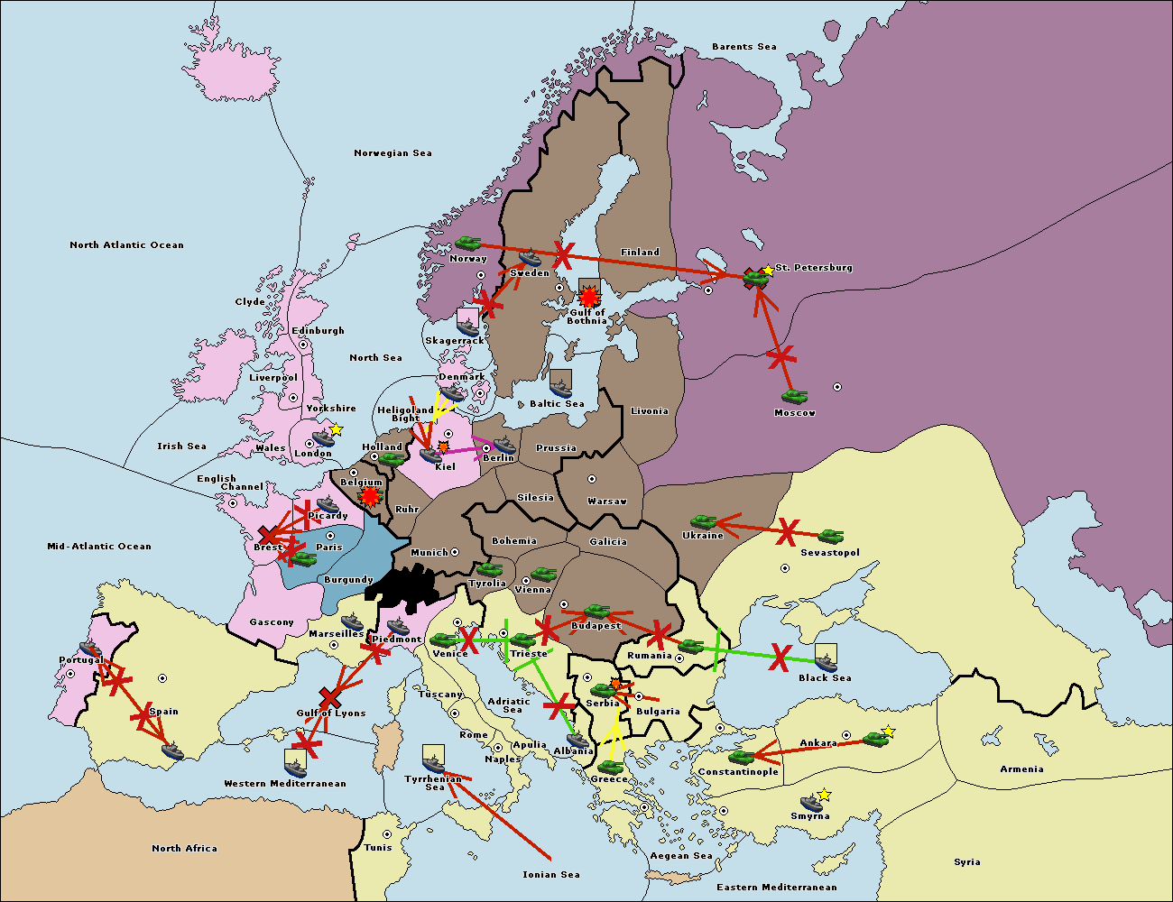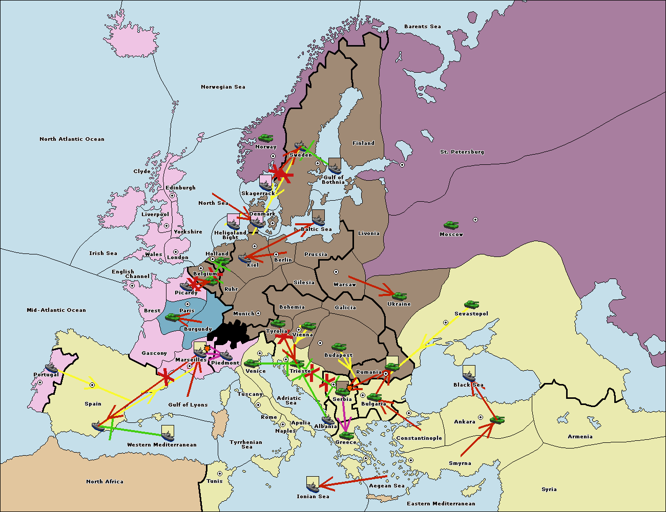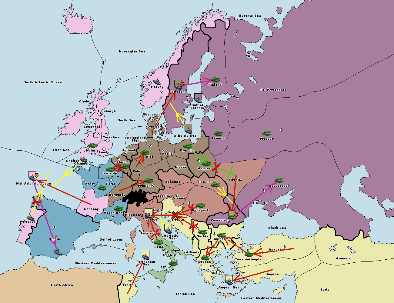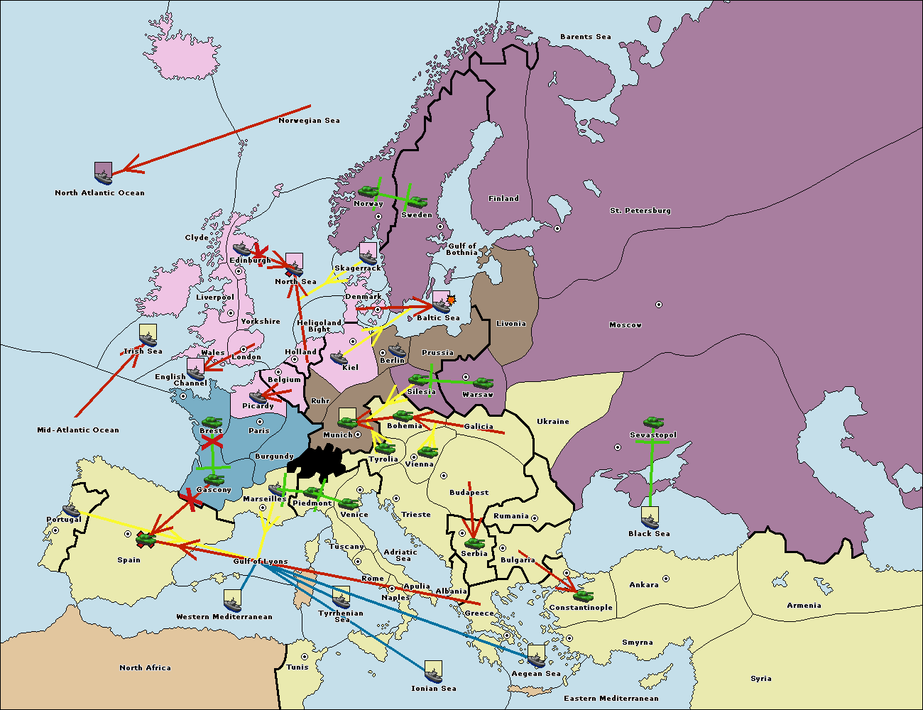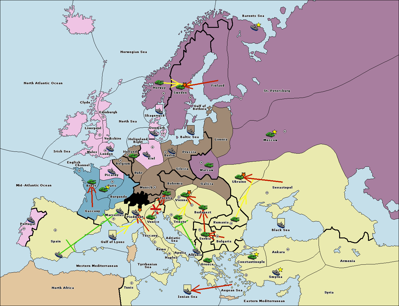 The fleet at Tyrrhenian Sea support move to Naples from Ionian Sea.