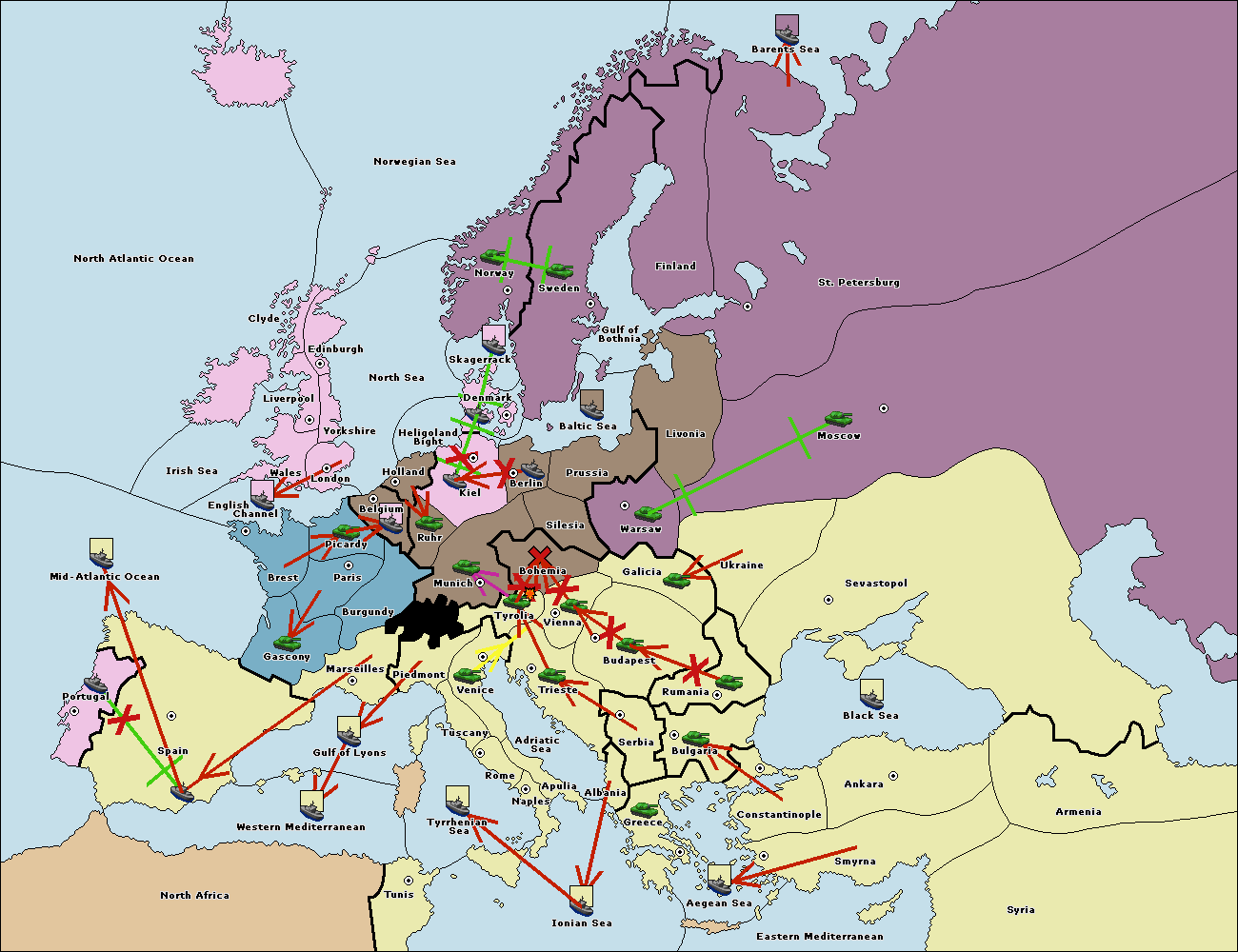 The army at Munich support move to Tyrolia from Bohemia.
