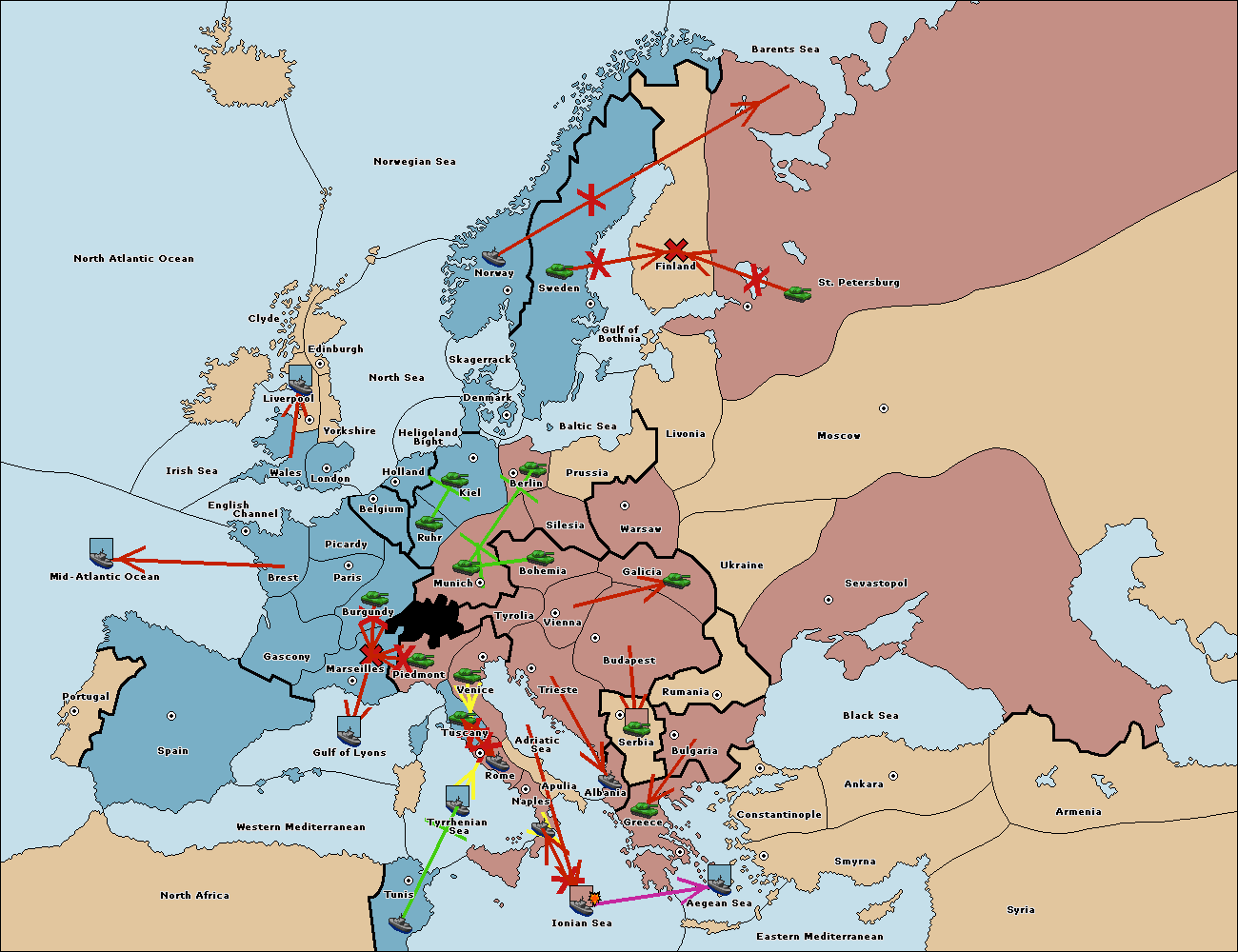 The fleet at Rome support move to Tyrrhenian Sea from Ionian Sea.