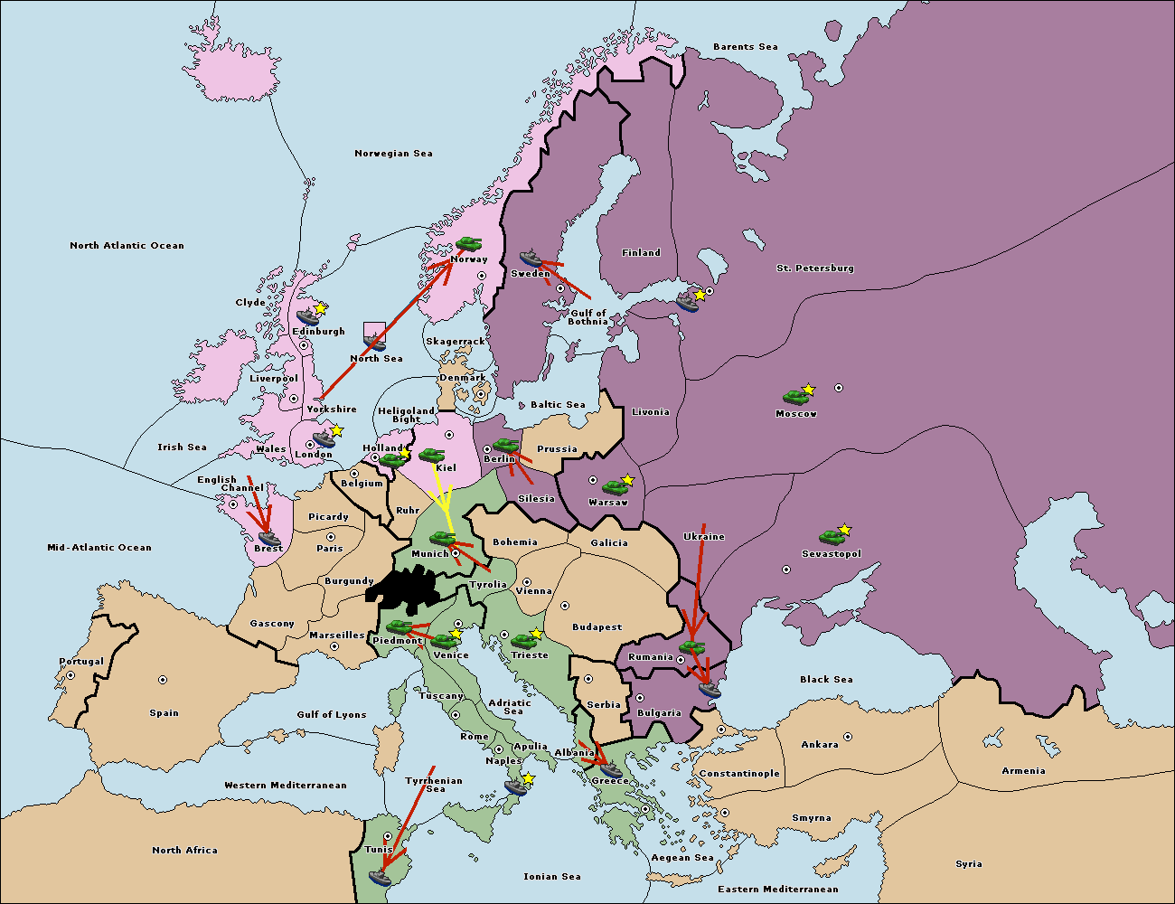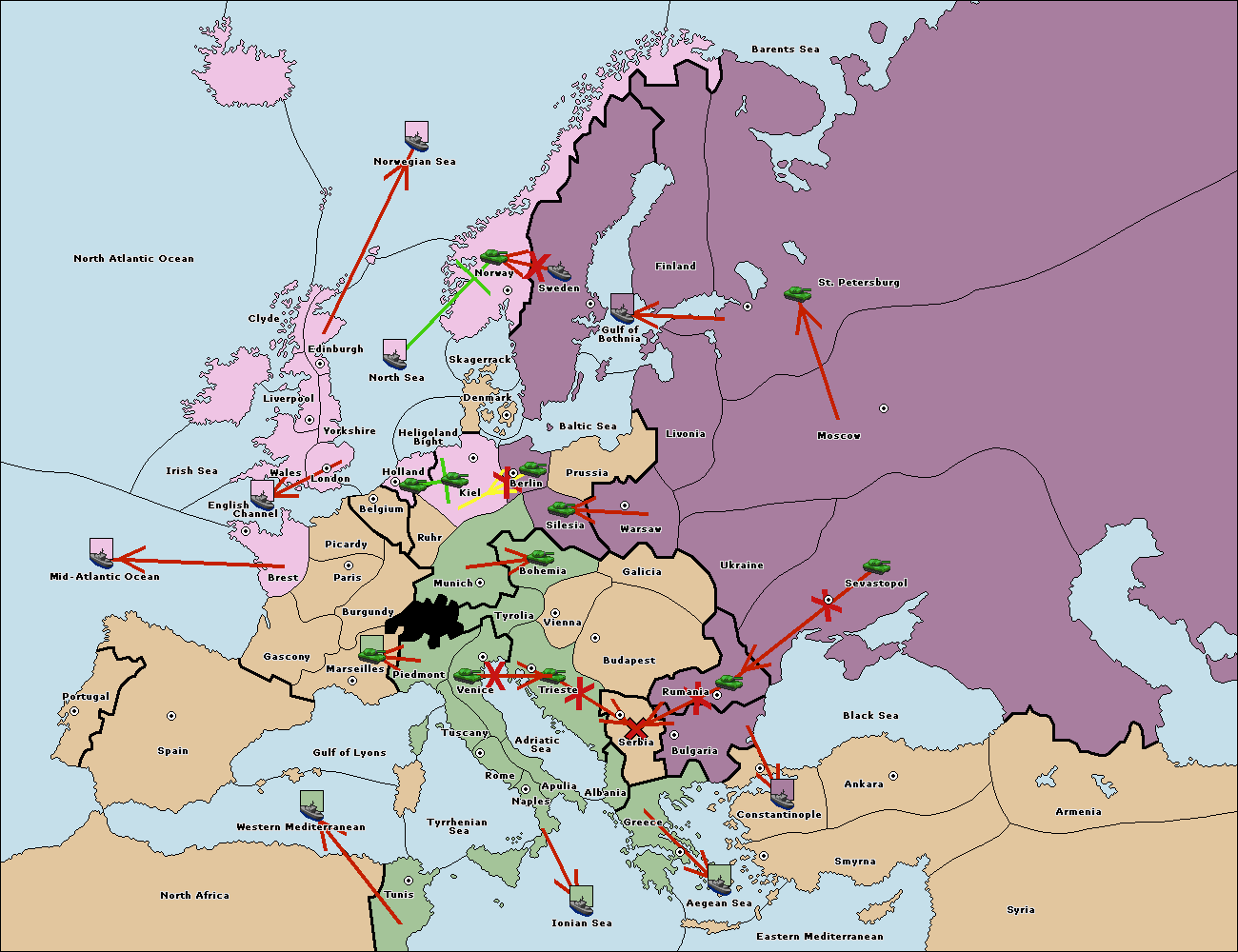 The fleet at Bulgaria (North Coast) move to Constantinople.