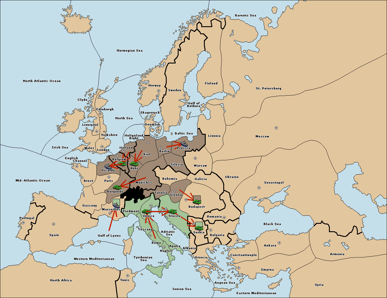 The army at Tyrolia move to Munich.