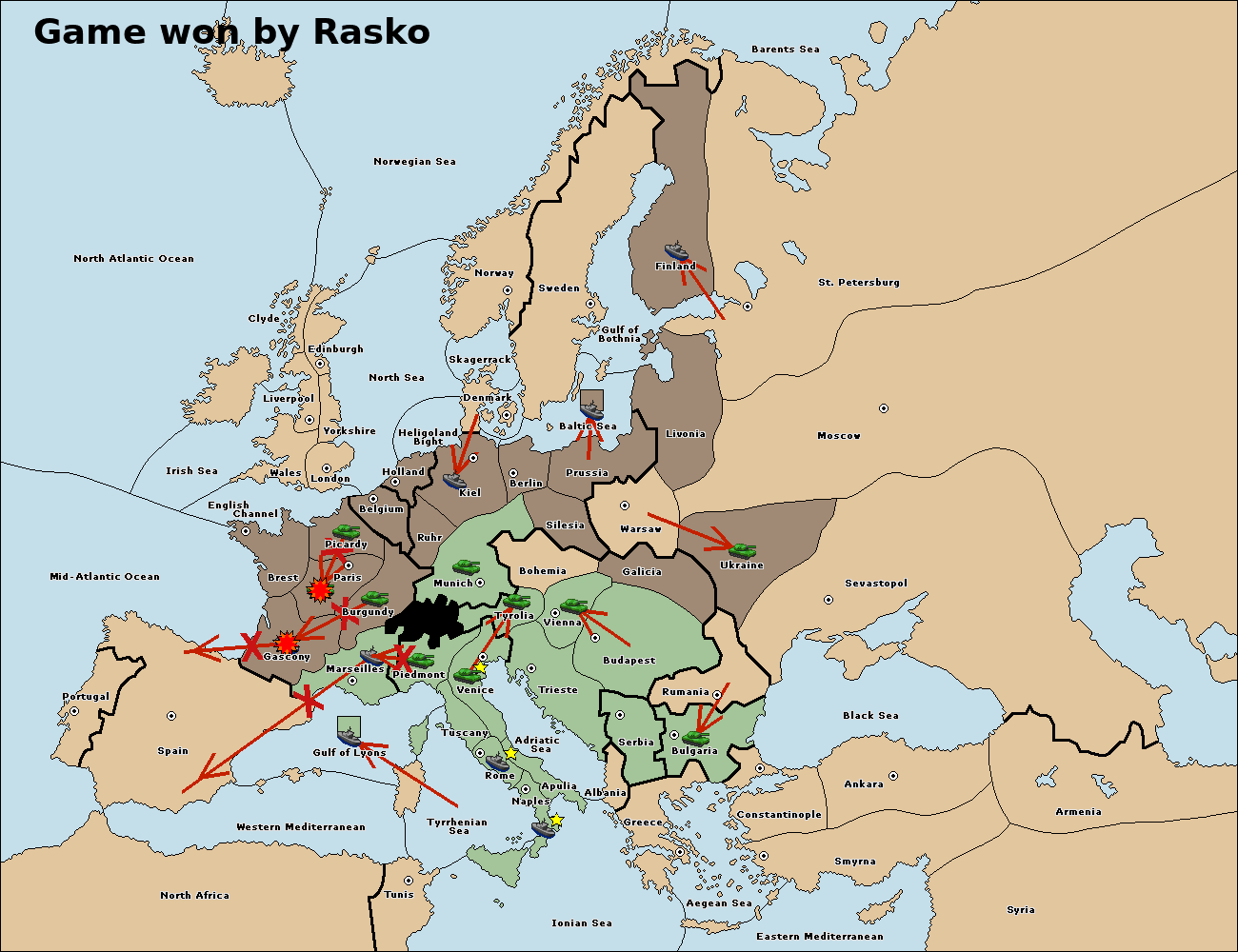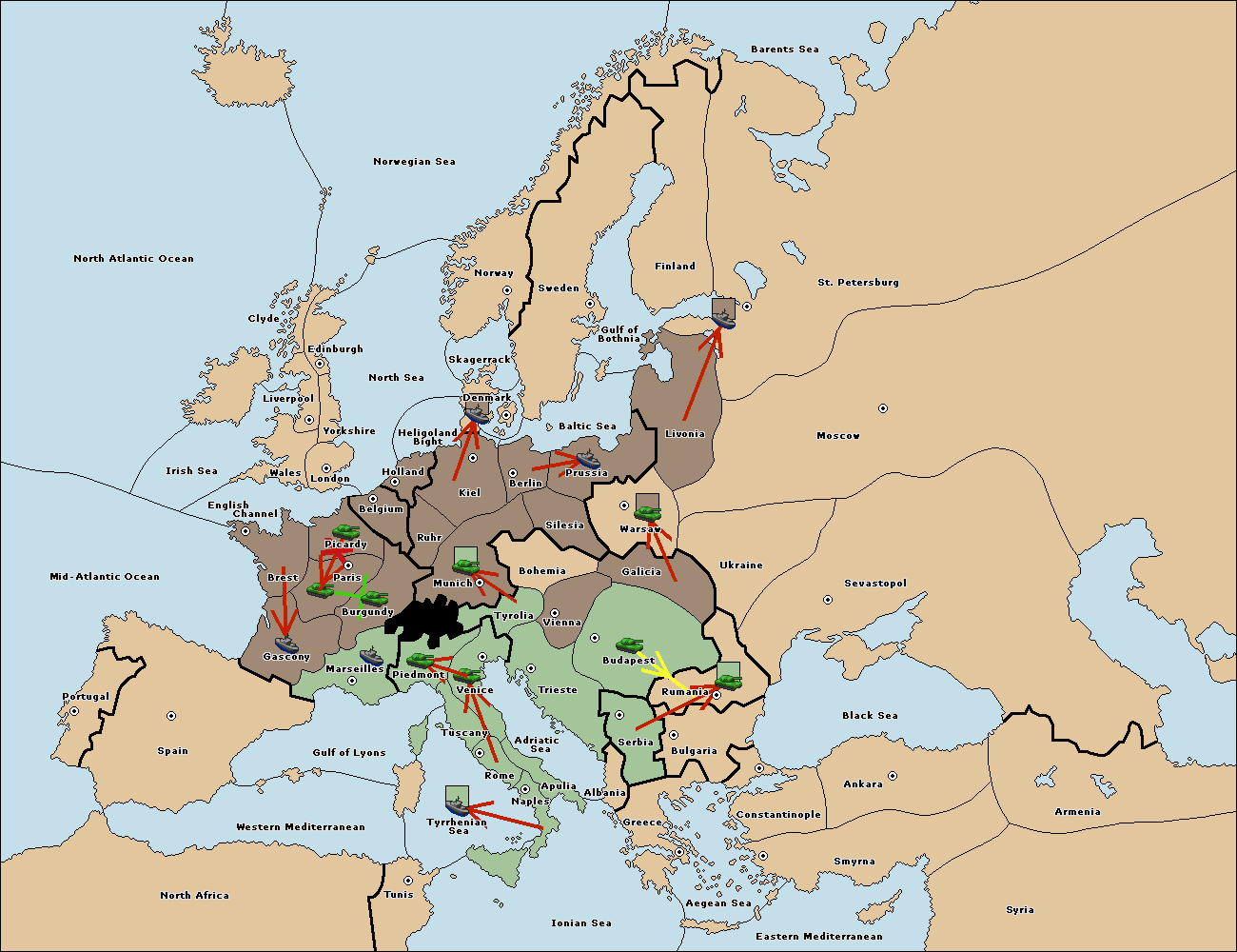 The fleet at Prussia move to Baltic Sea.