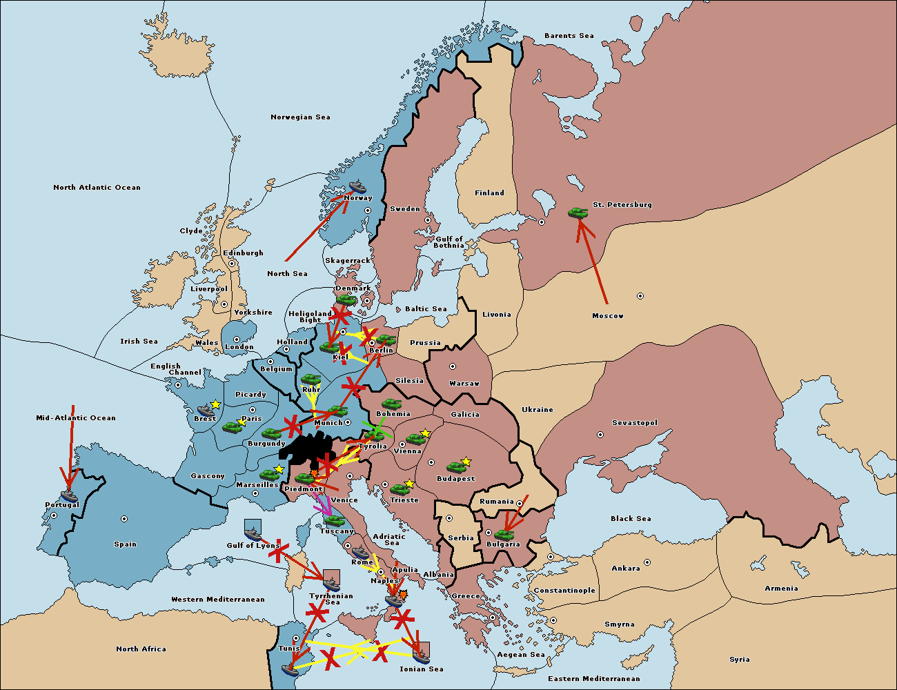 The fleet at Tuscany move to Tyrrhenian Sea.