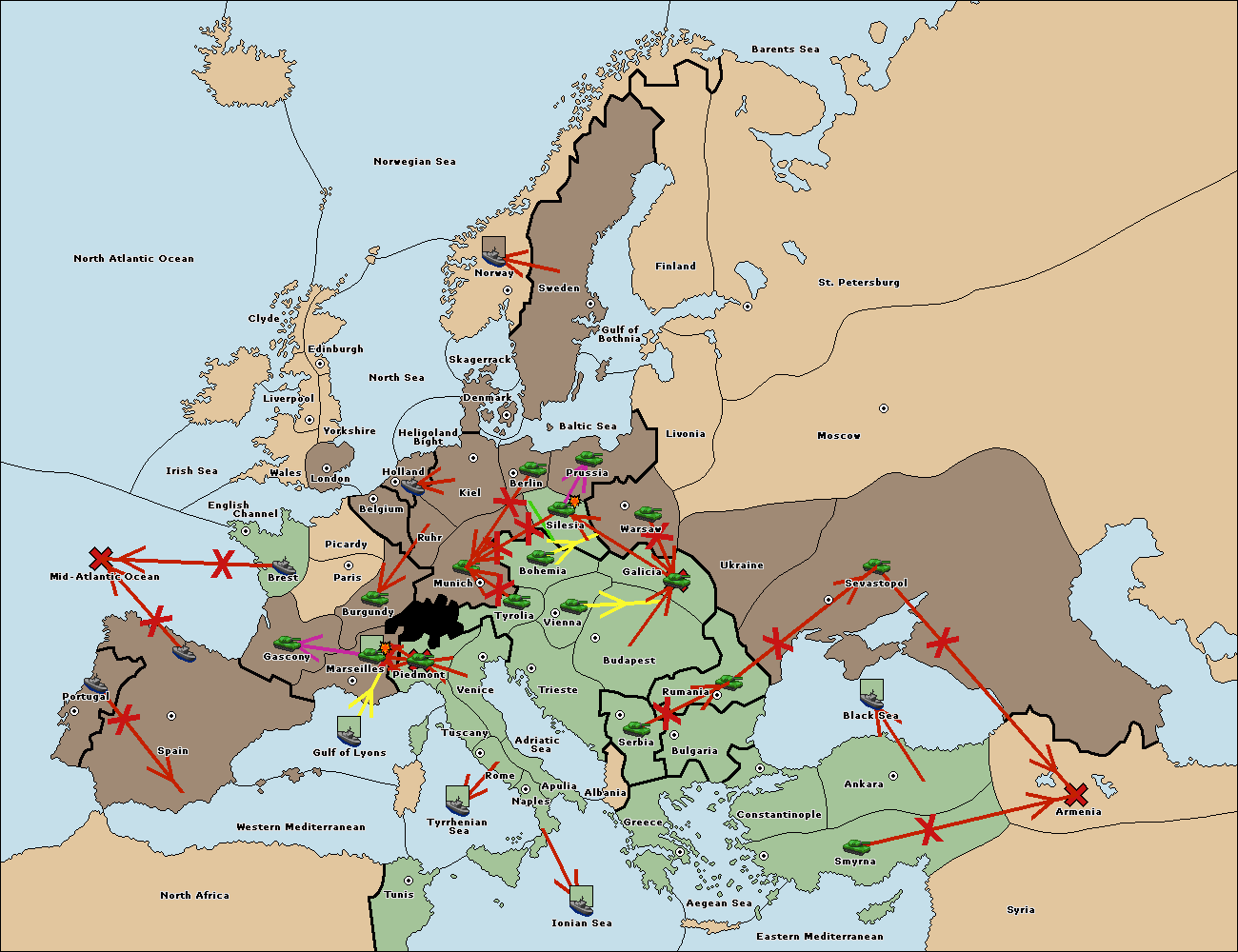The fleet at Gulf of Lyons support move to Marseilles from Piedmont.