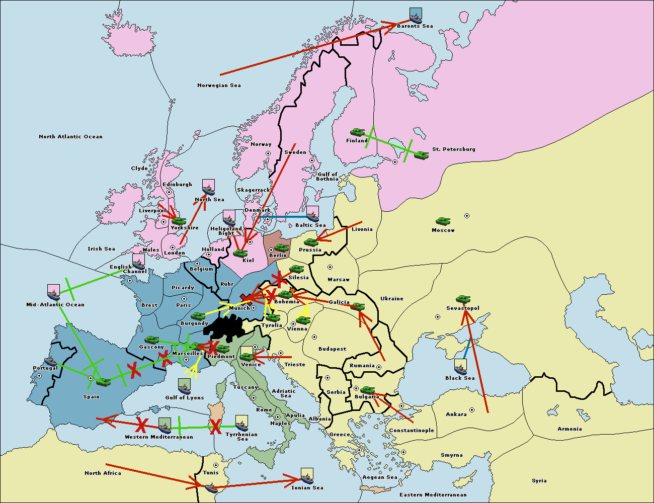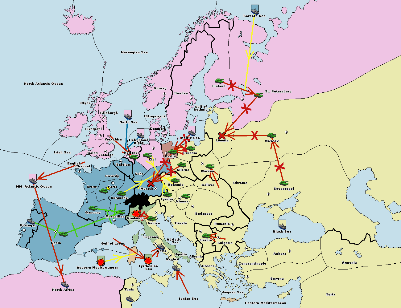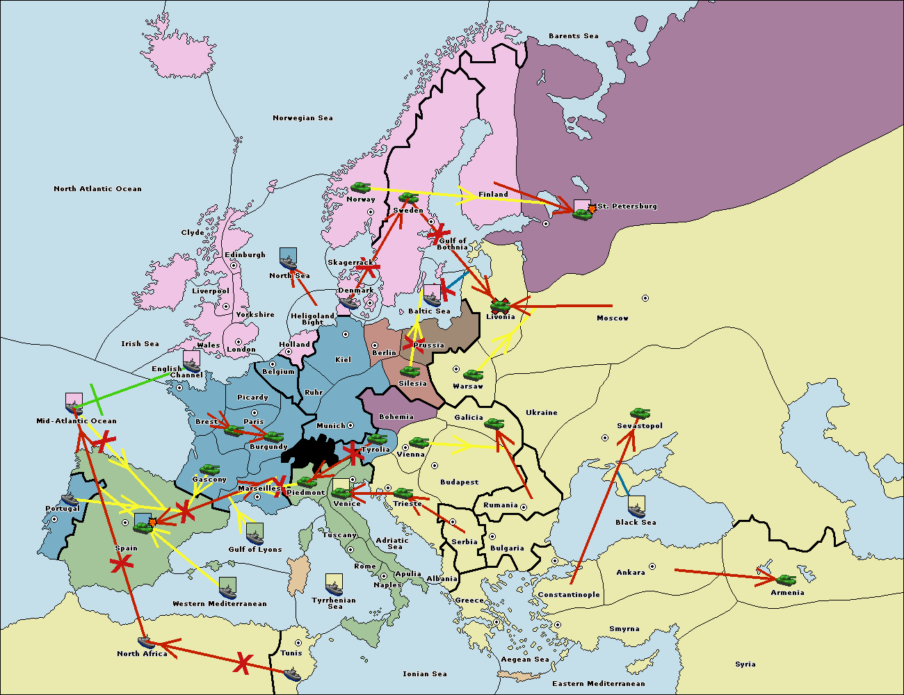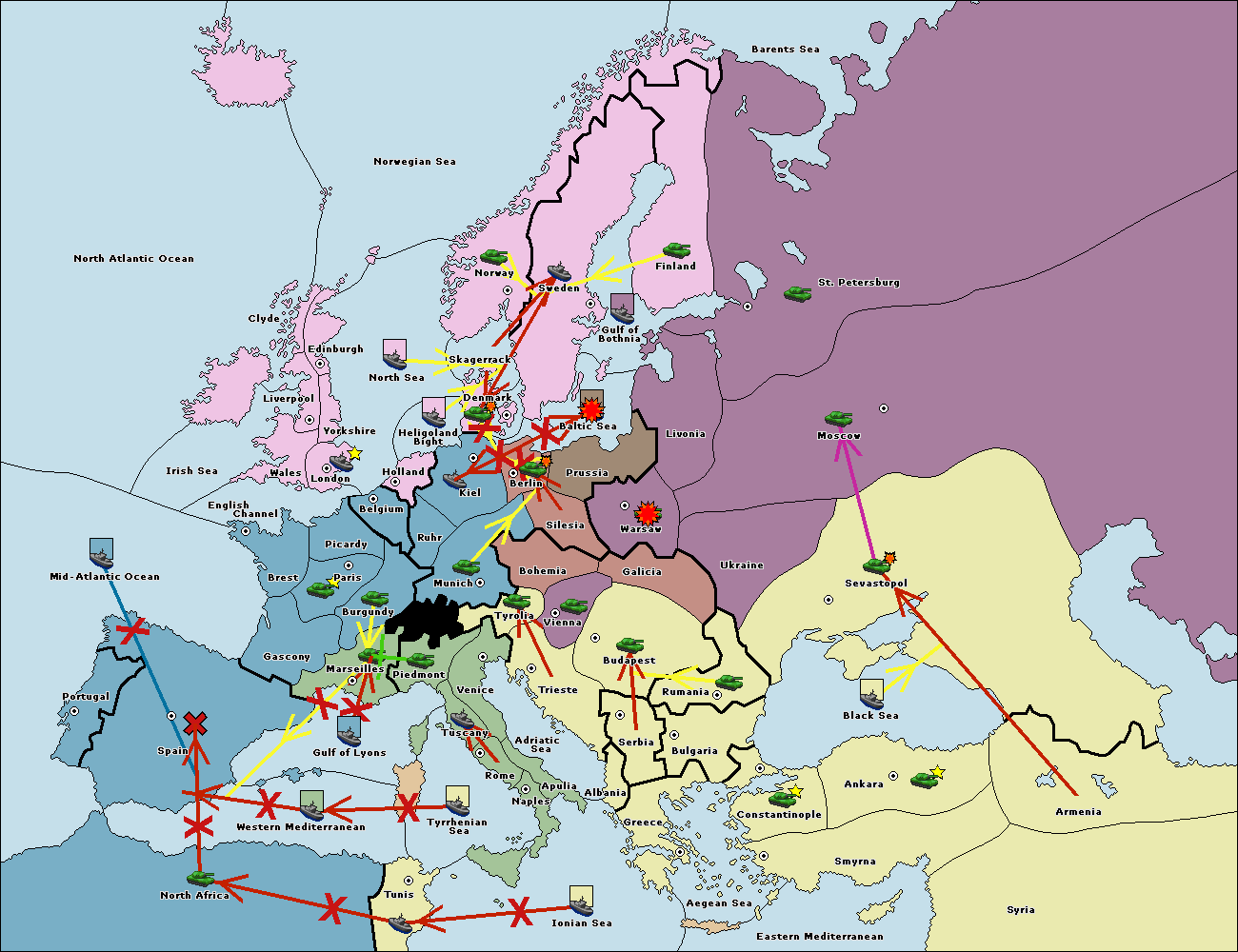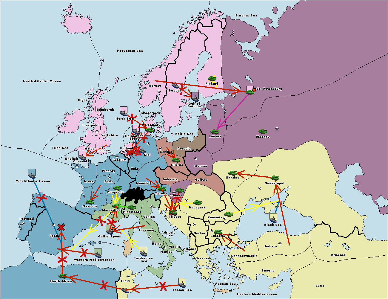 The fleet at Gulf of Lyons move to Tyrrhenian Sea.