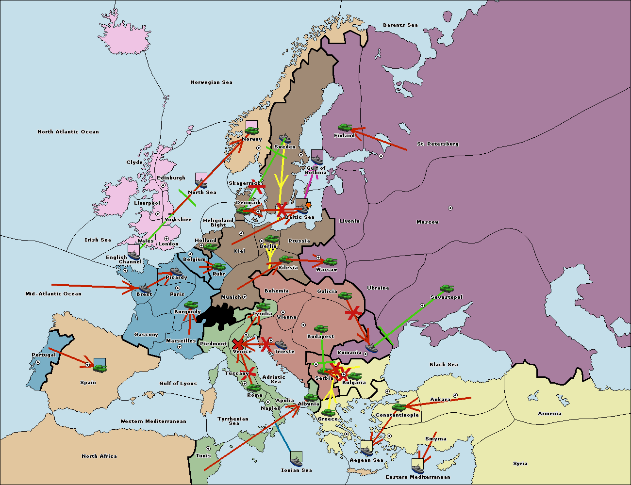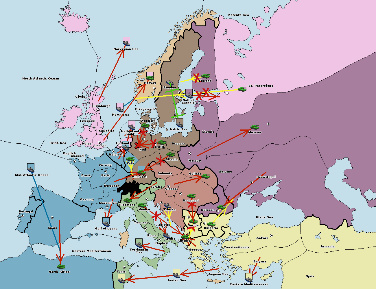 The fleet at Gulf of Bothnia move to St. Petersburg (South Coast).