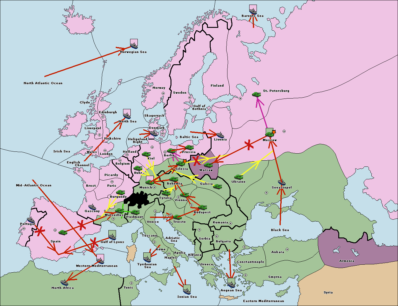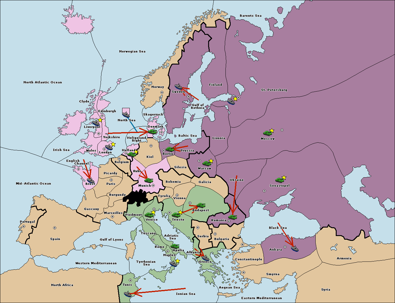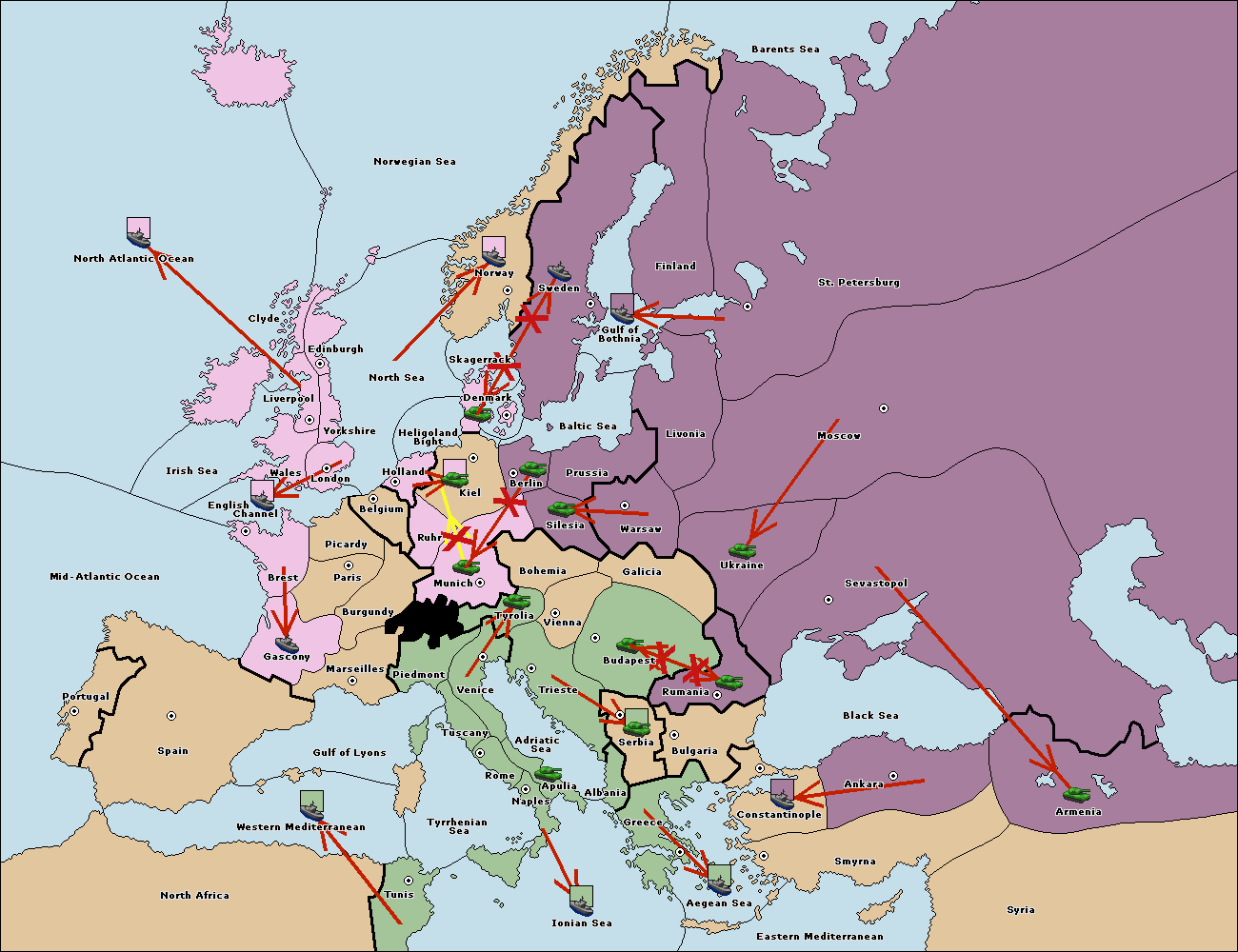 The fleet at Berlin move to Baltic Sea.
