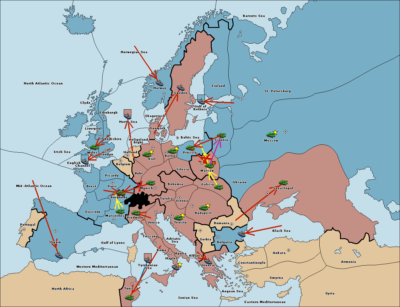 The fleet at Bulgaria (North Coast) move to Constantinople.