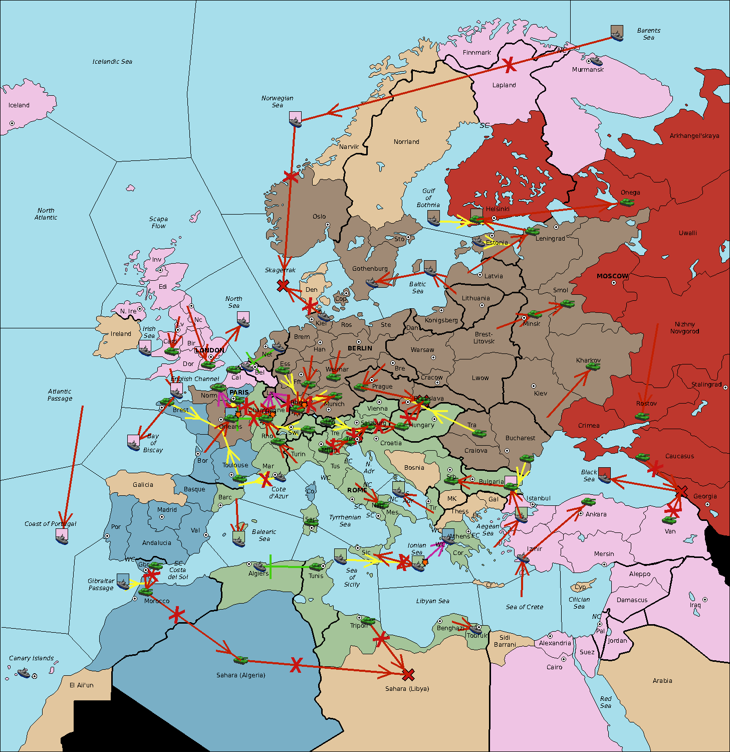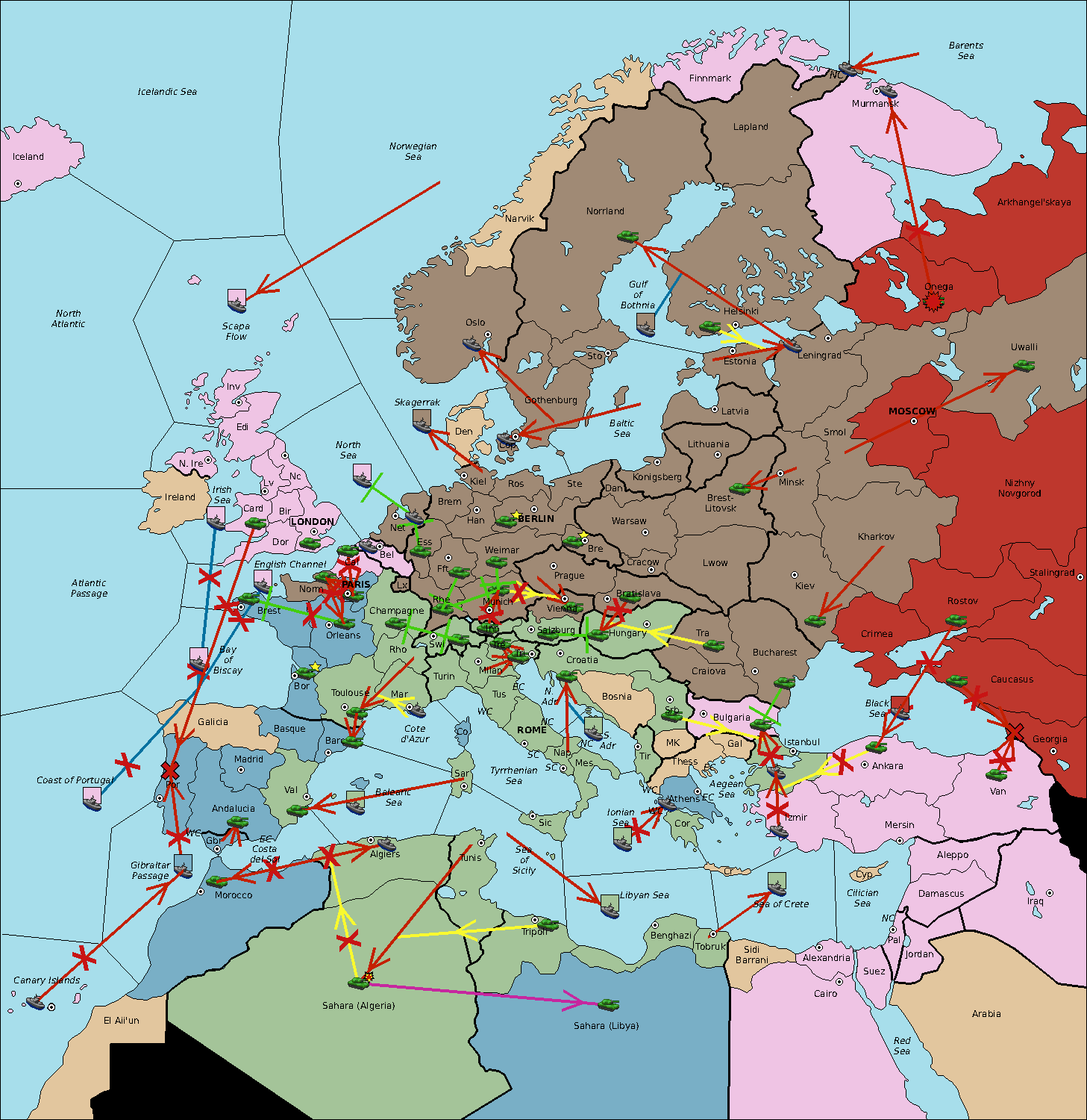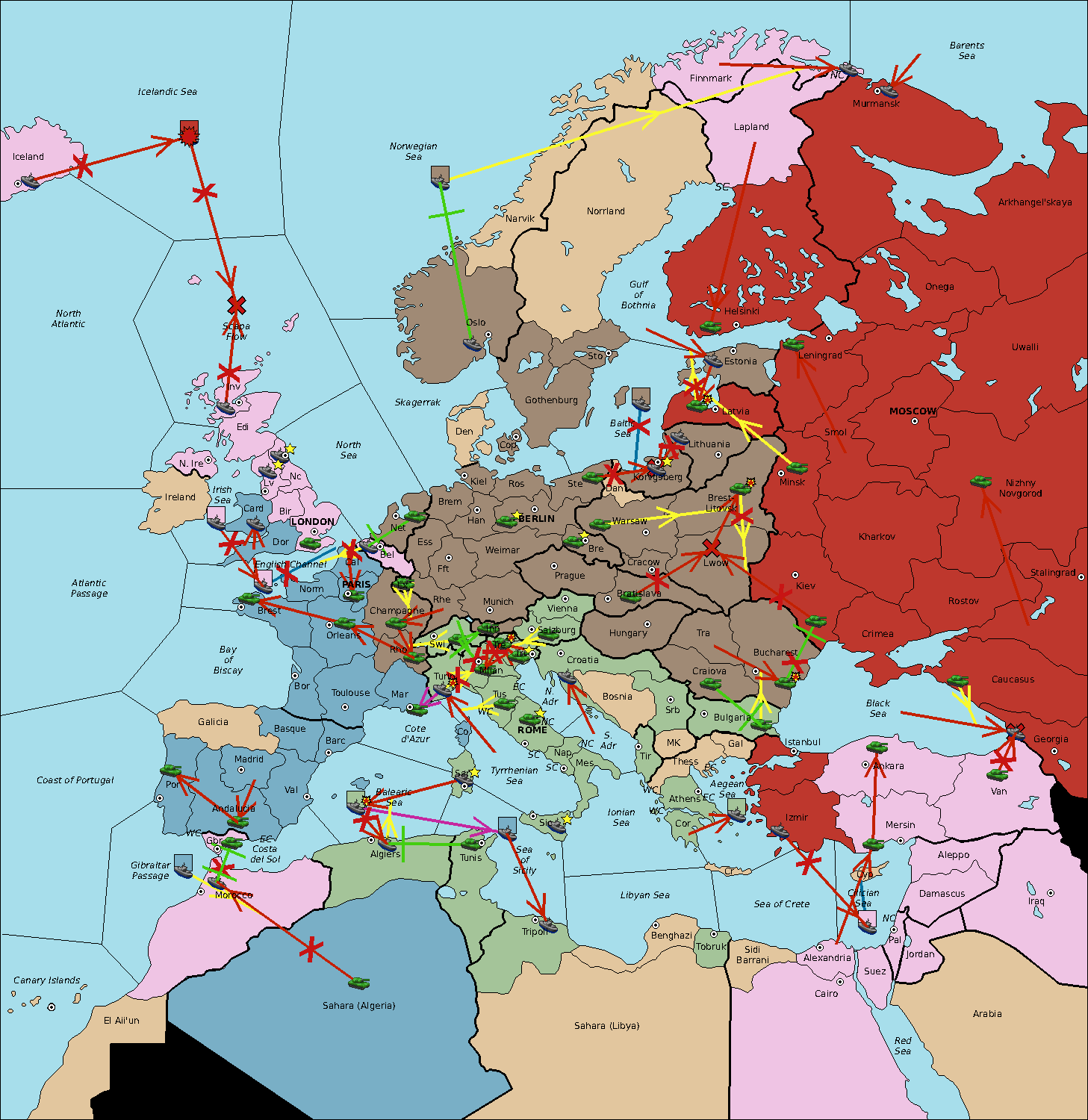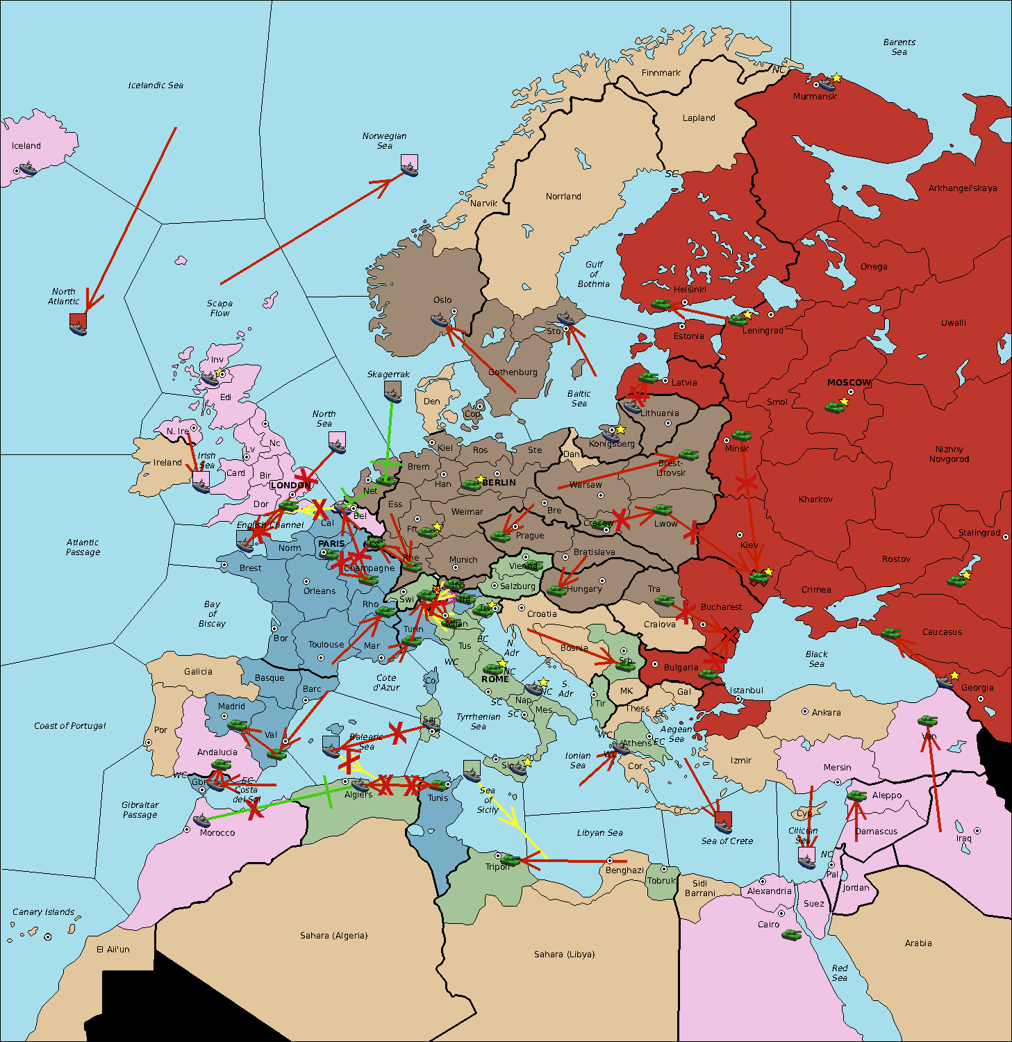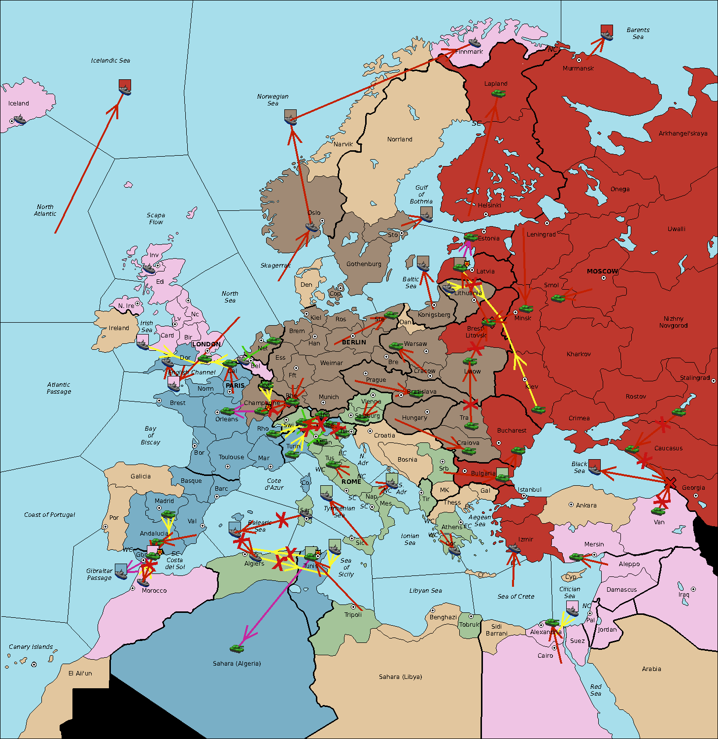 The fleet at Sea of Sicily support move to Algiers from Balearic Sea.