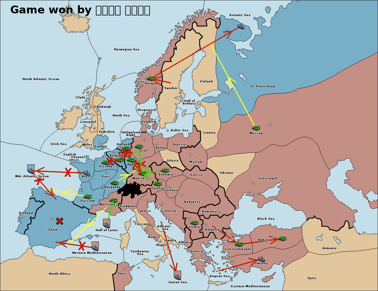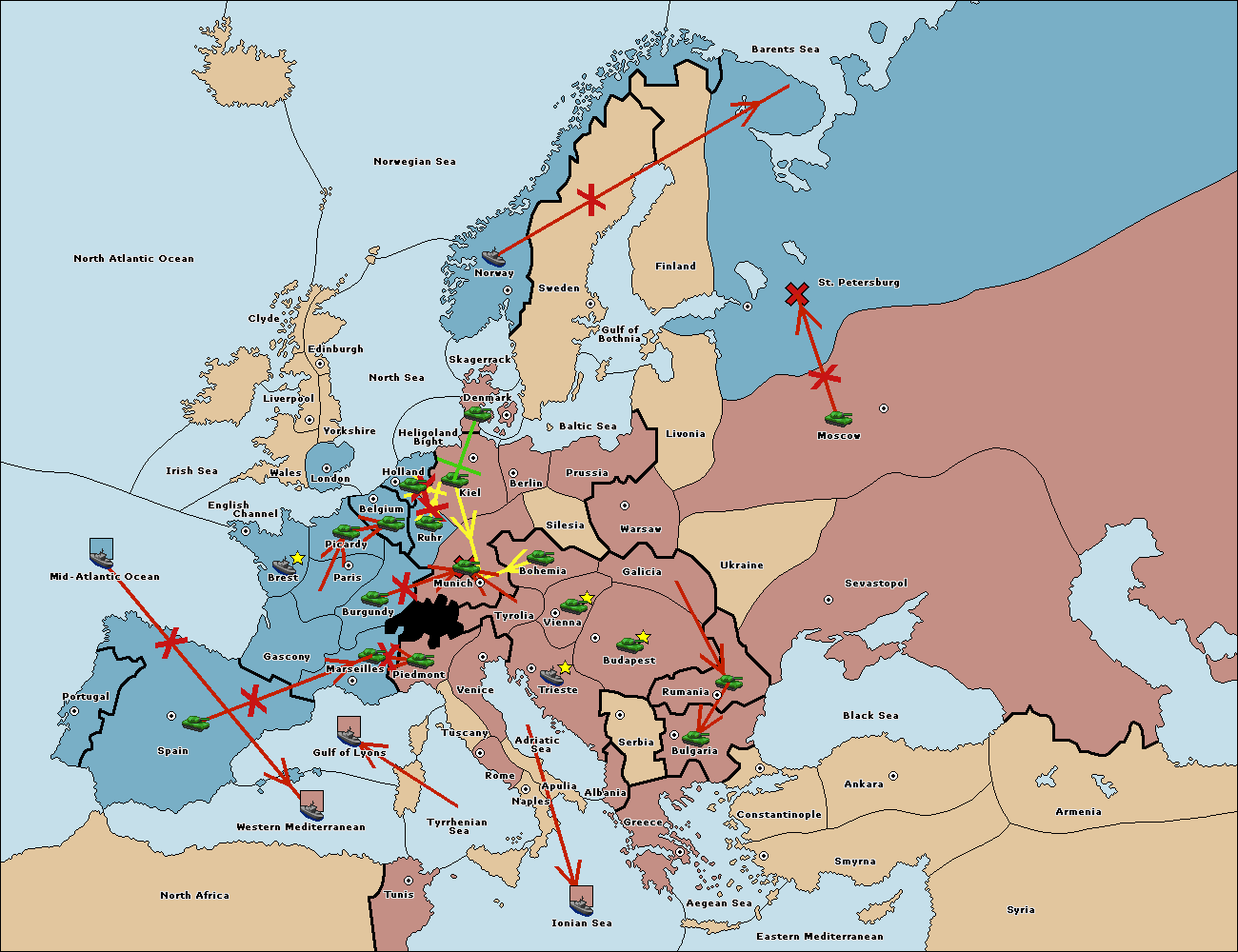 The fleet at Mid-Atlantic Ocean move to Western Mediterranean.