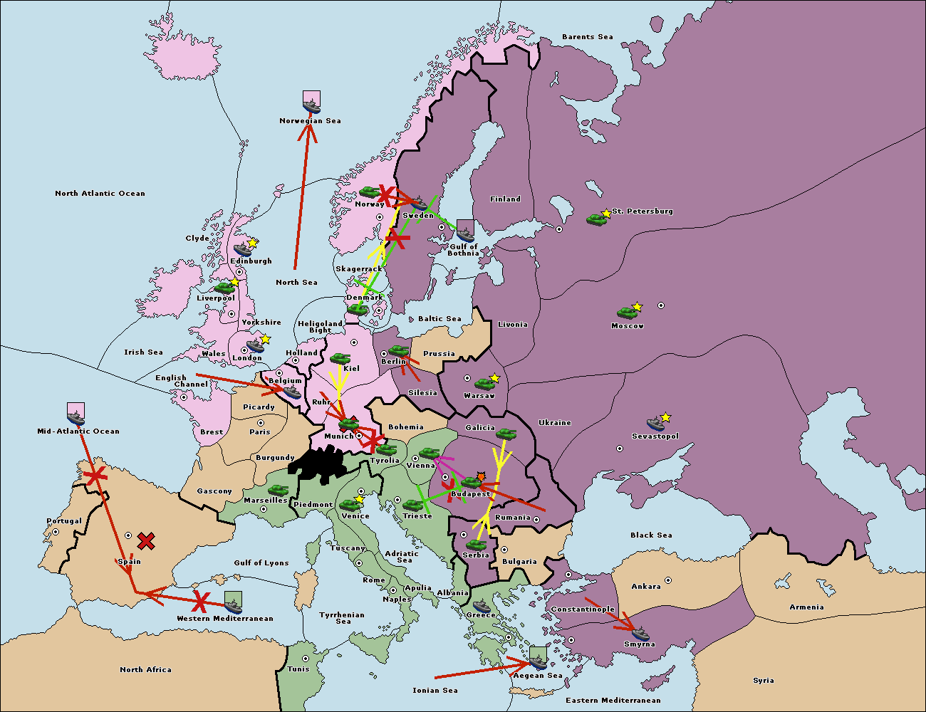 The fleet at Bulgaria (South Coast) retreat to Aegean Sea.
