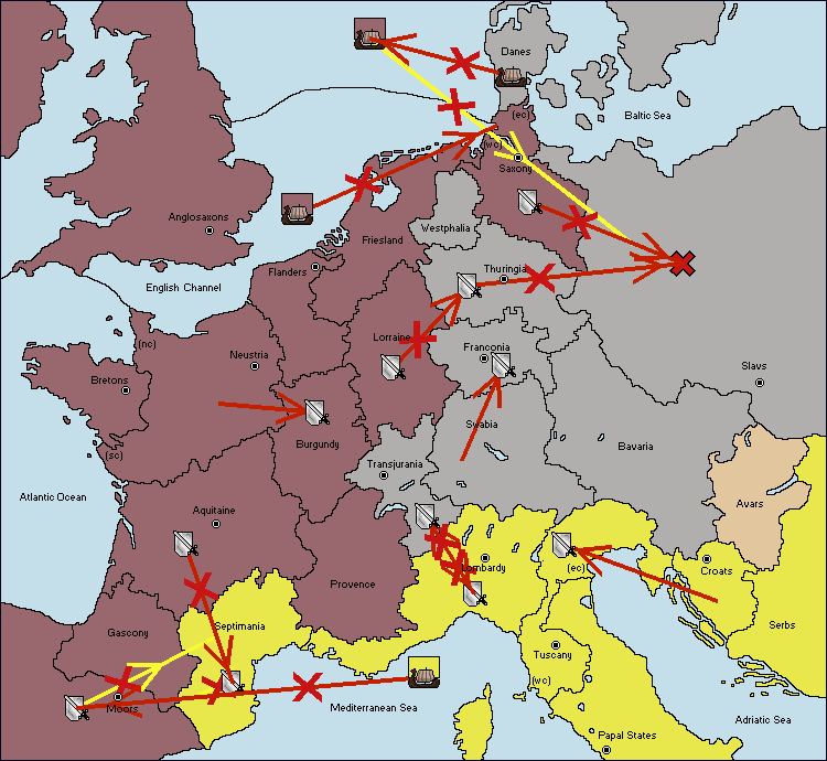 The army at Neustria support move to Bretons from Atlantic Ocean.