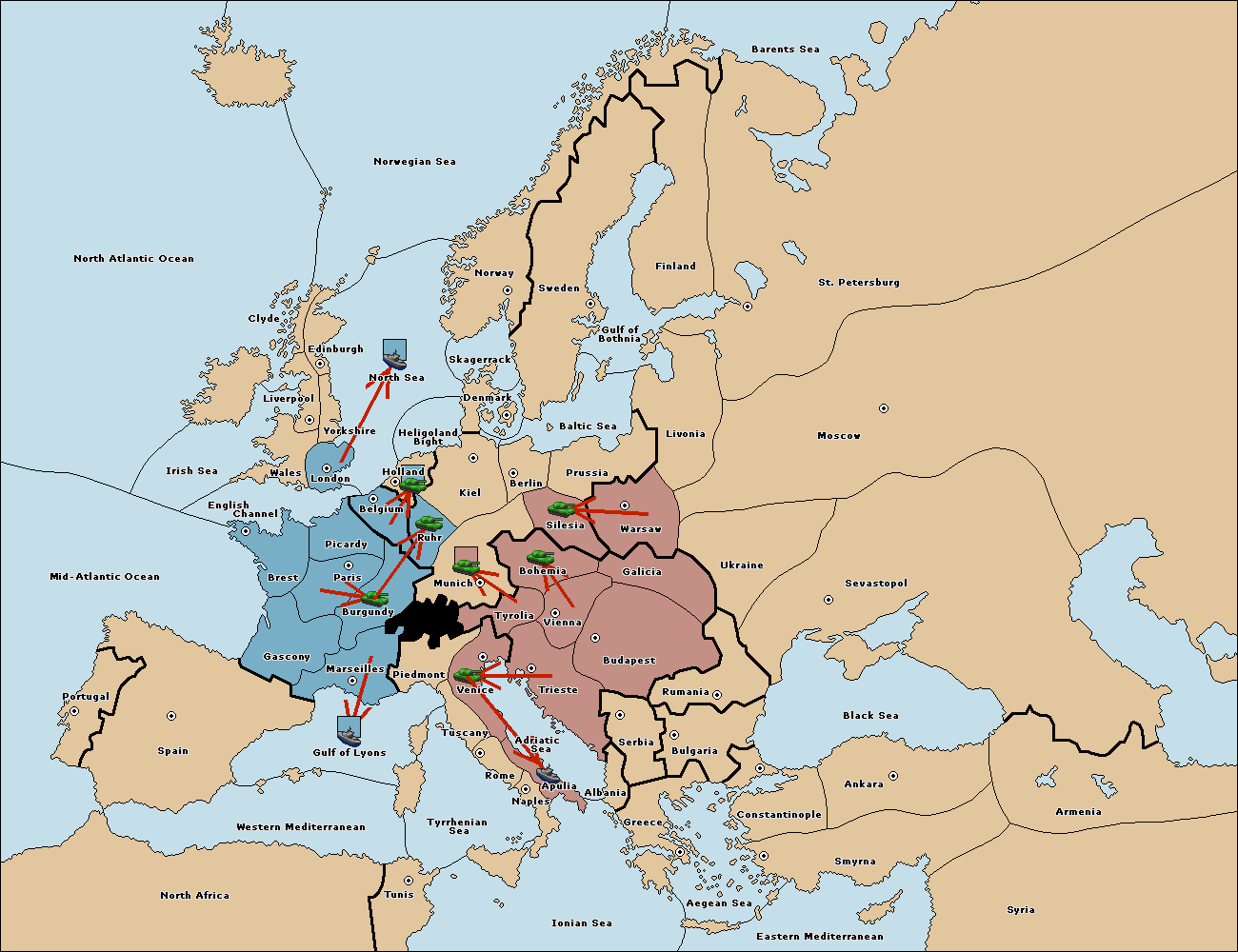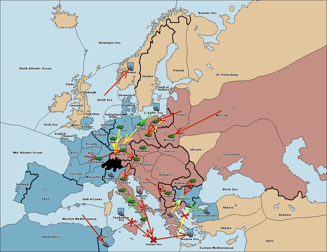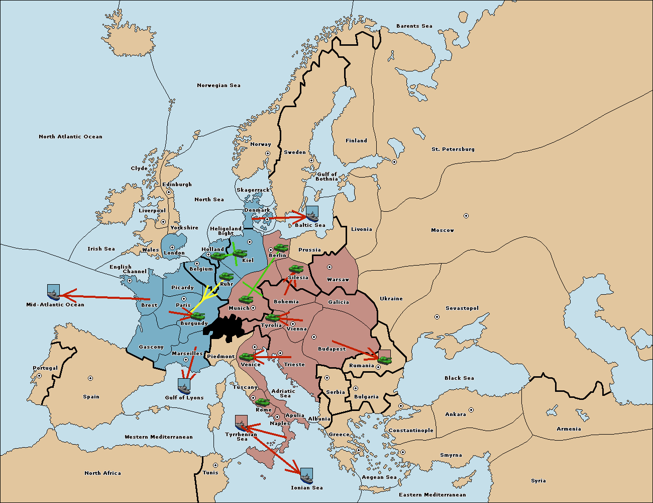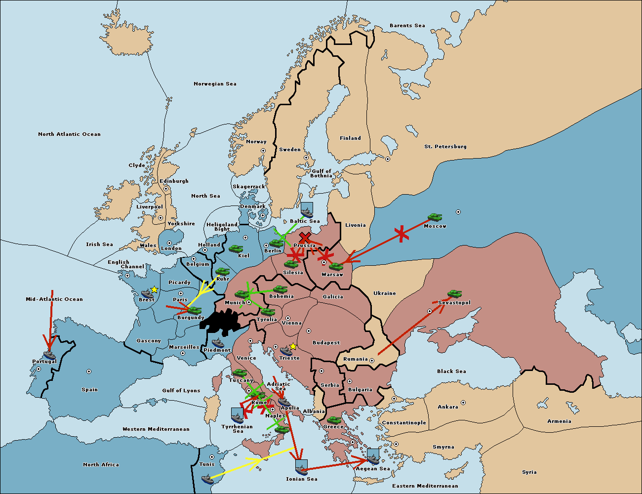 The fleet at Bulgaria (South Coast) move to Constantinople.