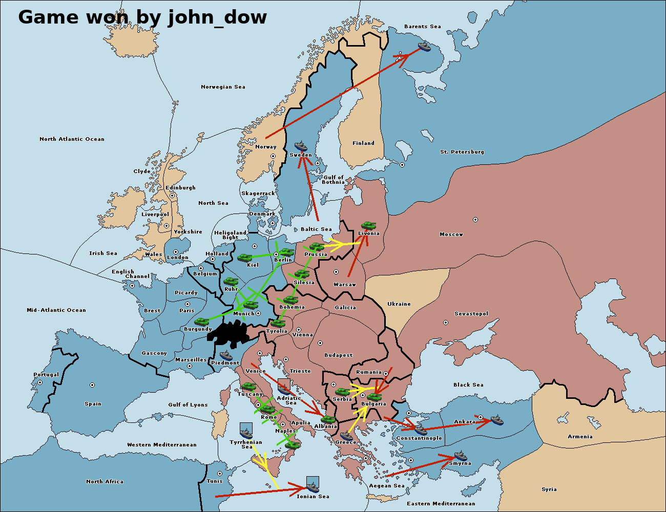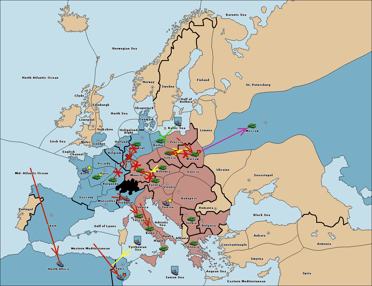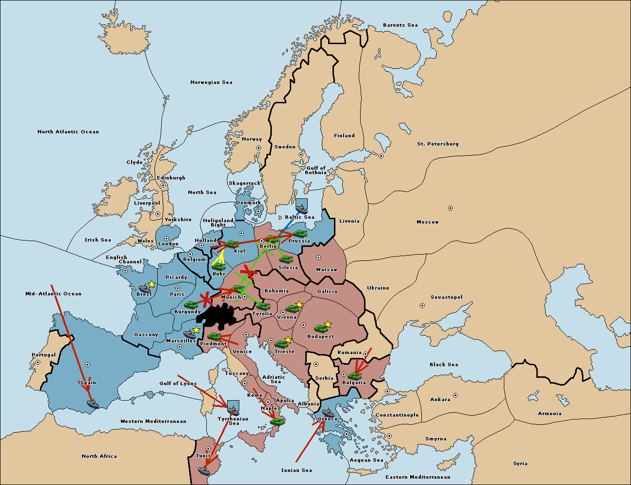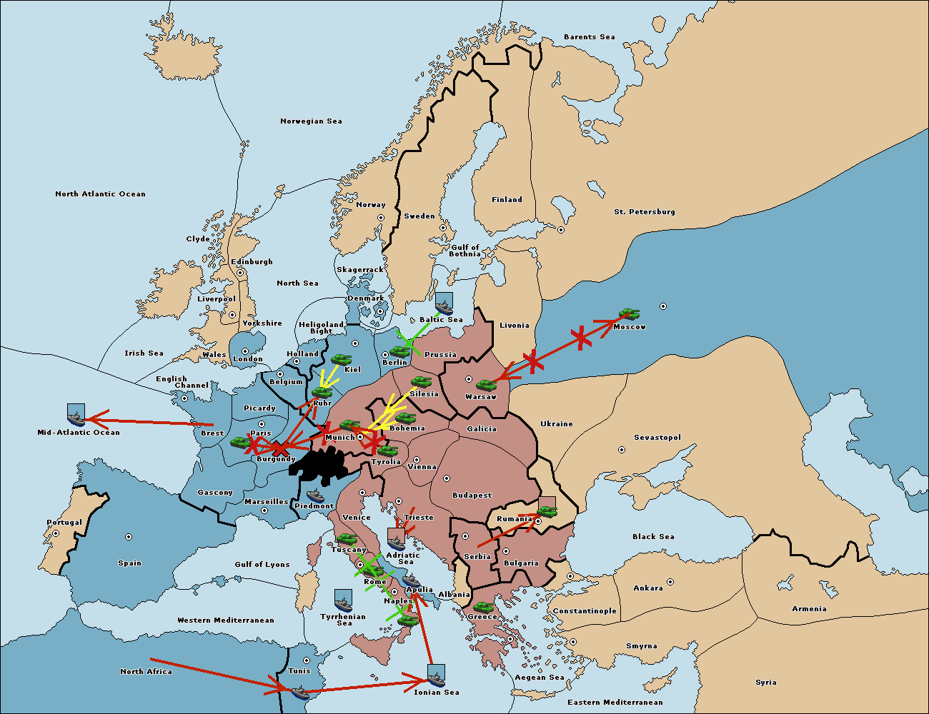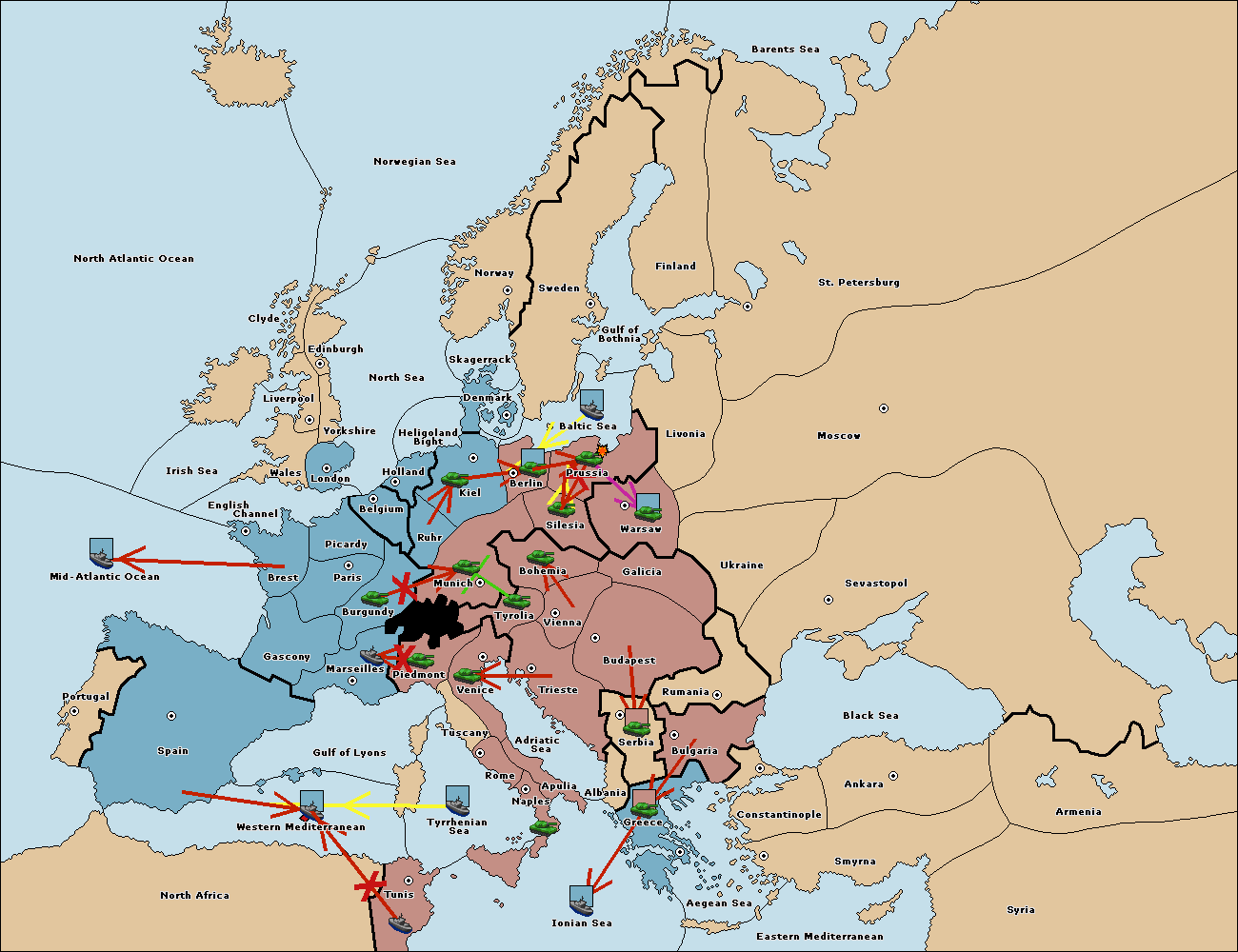 The fleet at Bulgaria (South Coast) move to Constantinople.