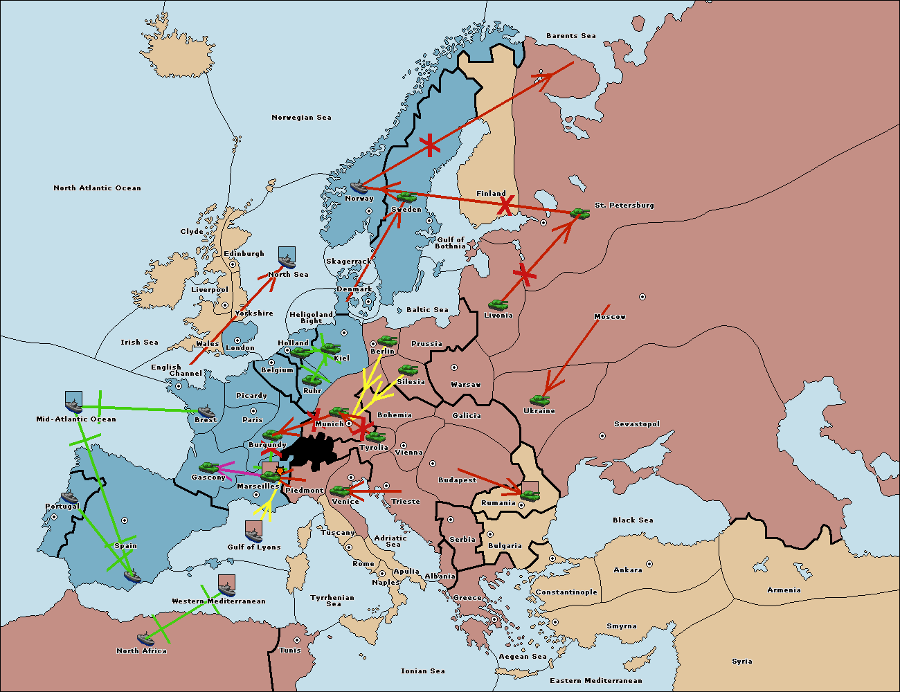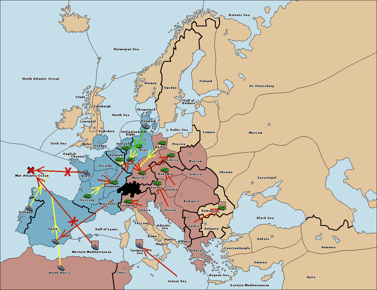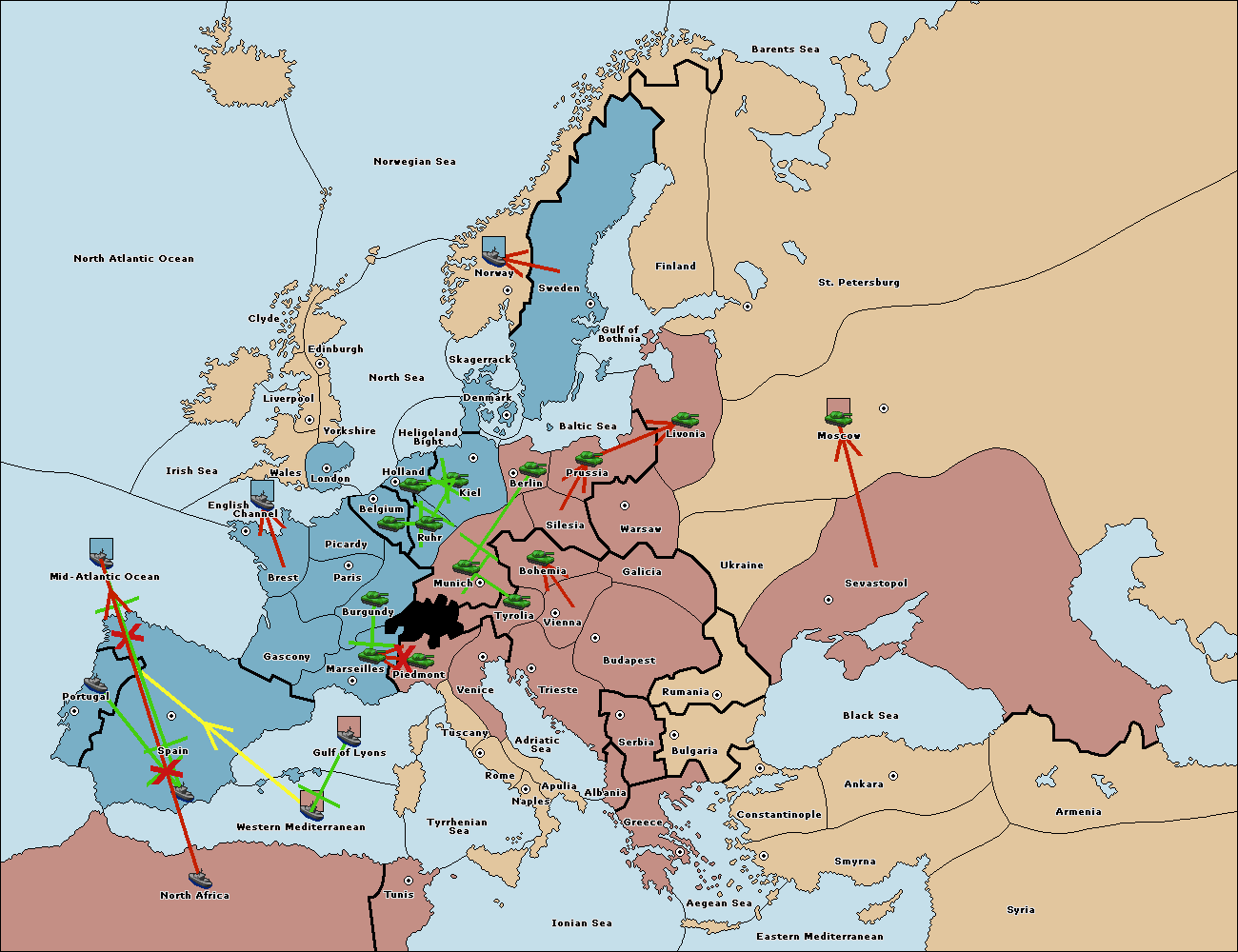 The fleet at Mid-Atlantic Ocean move to Western Mediterranean.