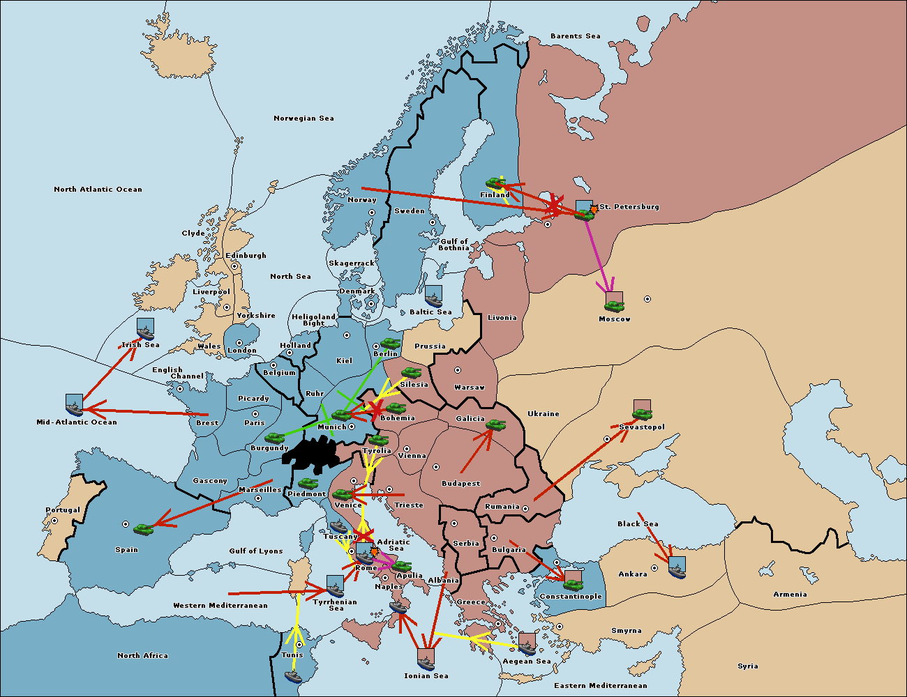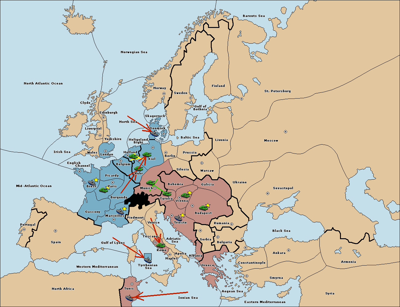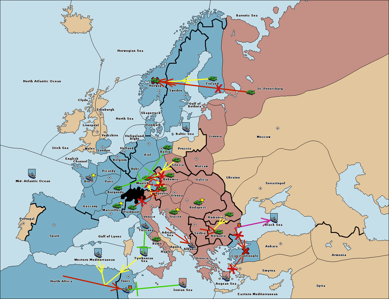 The fleet at Bulgaria (North Coast) move to Constantinople.
