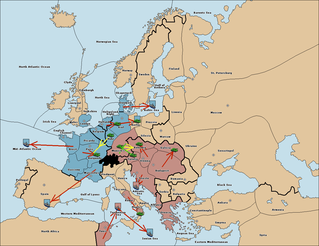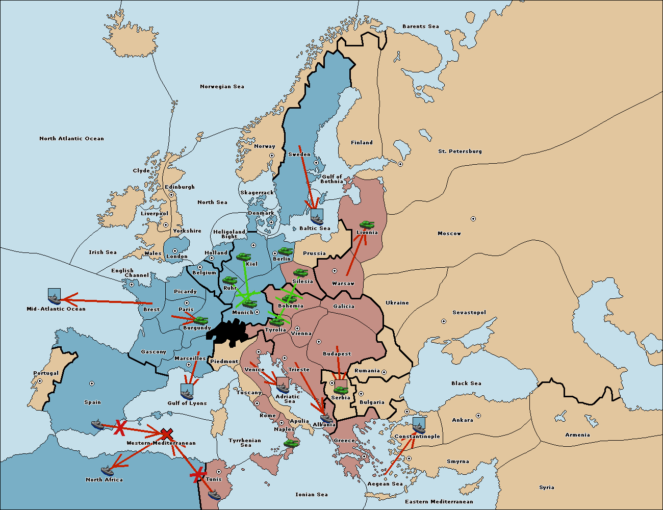 The fleet at Spain (South Coast) support move to Western Mediterranean from Mid-Atlantic Ocean.