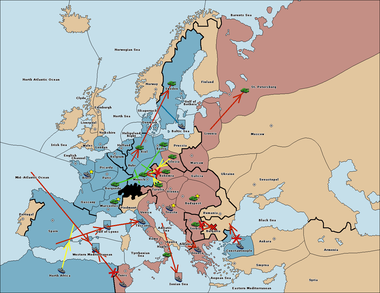 The fleet at Mid-Atlantic Ocean move to Western Mediterranean.