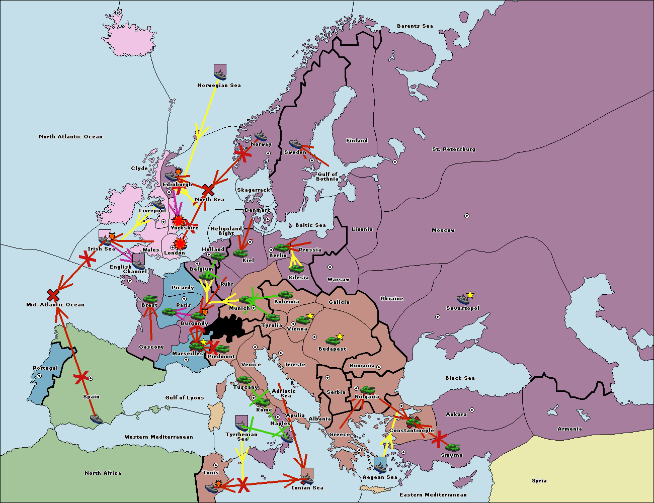 The fleet at Bulgaria (South Coast) move to Constantinople.